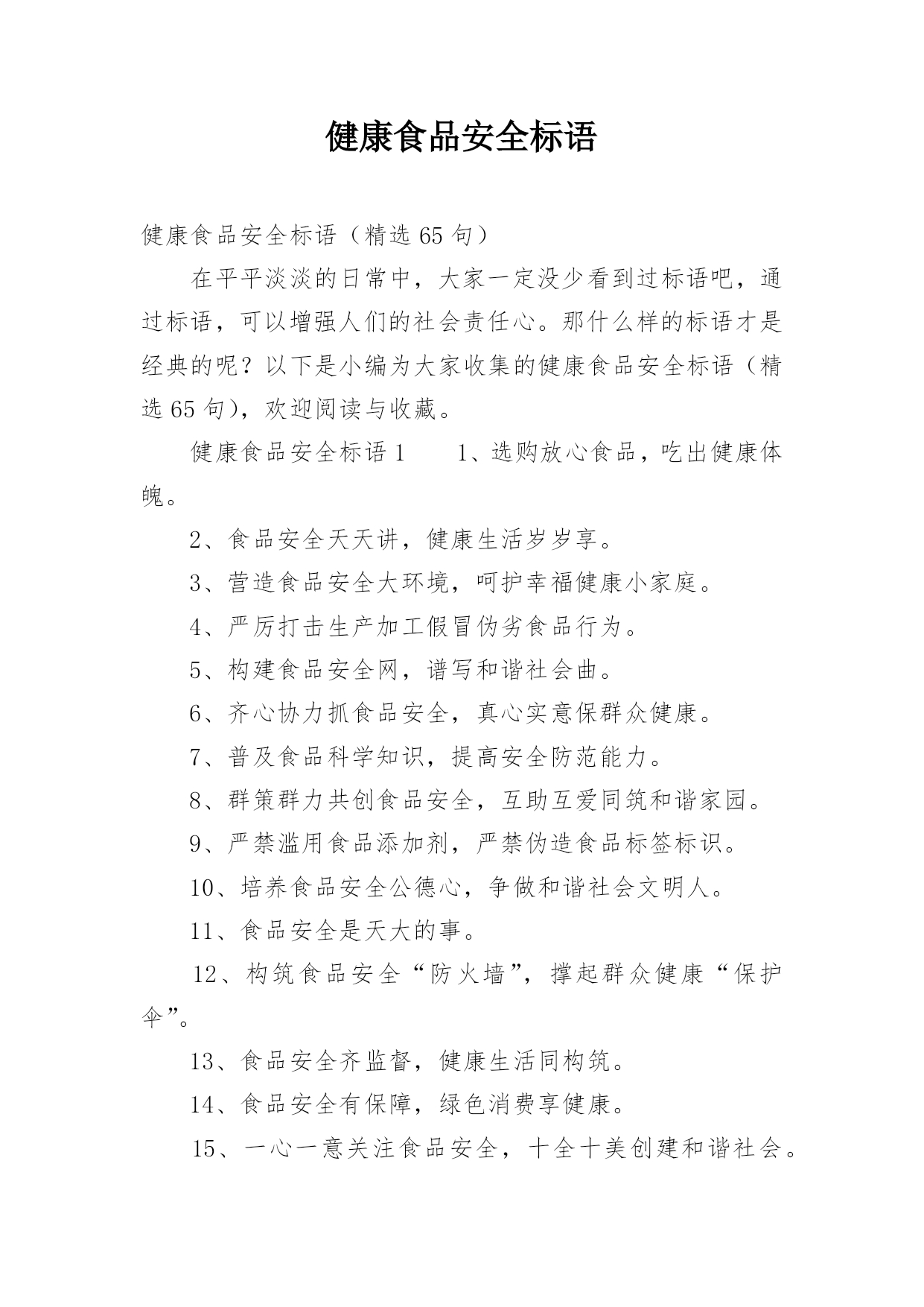 健康食品安全标语.docx