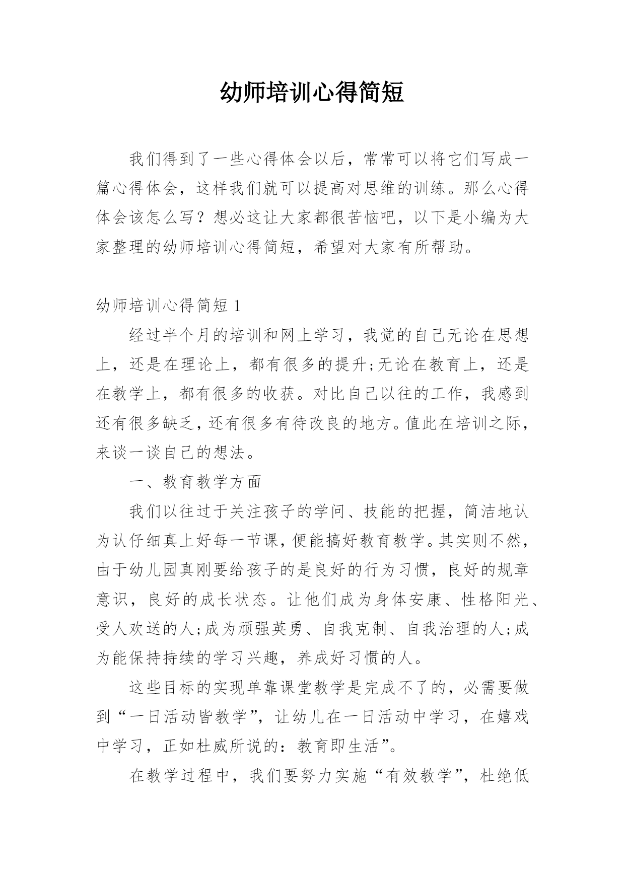 幼师培训简短心得.docx
