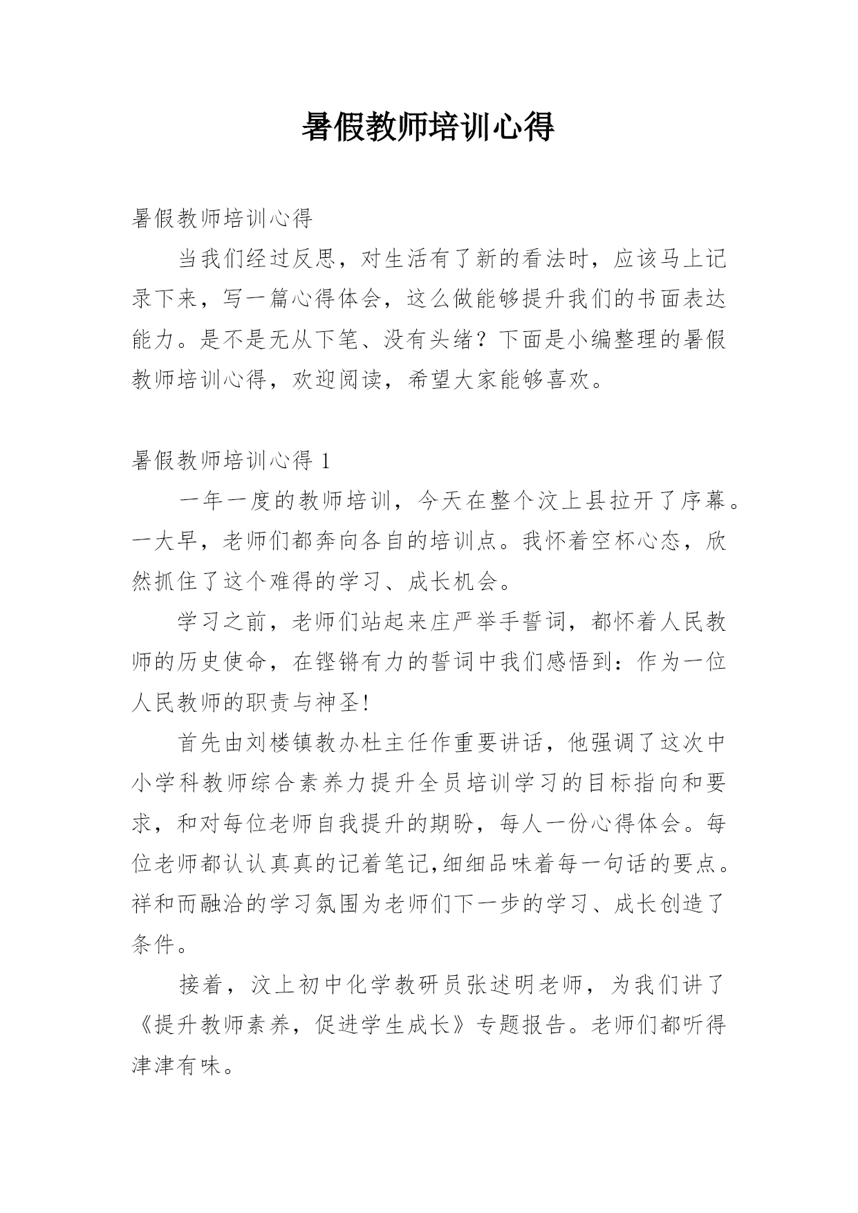 暑假教师培训心得暑假教师培训心得当我们经过反思,对生活有了新的看法时,应该马上记录下来,写一篇心得体会,这么做能够提升我们的书面表达能力。是不是无从下笔、没有头绪?下面是小编整理的暑假教师培训心得,欢迎阅读,希望大家能够喜欢。暑假教师培训心得1一年一度的教师培训,今天在整个汶上县拉开了序幕。一大早,老师们都奔向各自的培训点。我怀着空杯心态,欣然抓住了这个难得的学习、成长机会。学习之前,老师们站起来庄严举手誓词,都怀着人民教师的历史使命,在铿锵有力的誓词中我们感悟到:作为一位人民教师的职责与神圣!首先由刘楼
