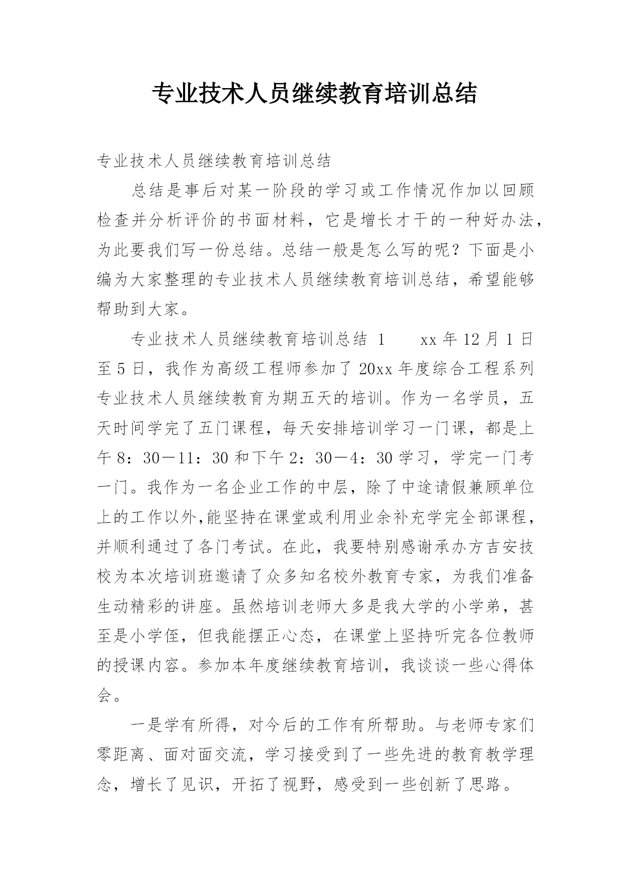 专业技术人员继续教育培训总结.docx