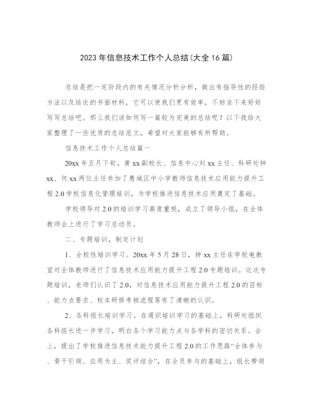 2023年信息技术工作个人总结(大全16篇).docx