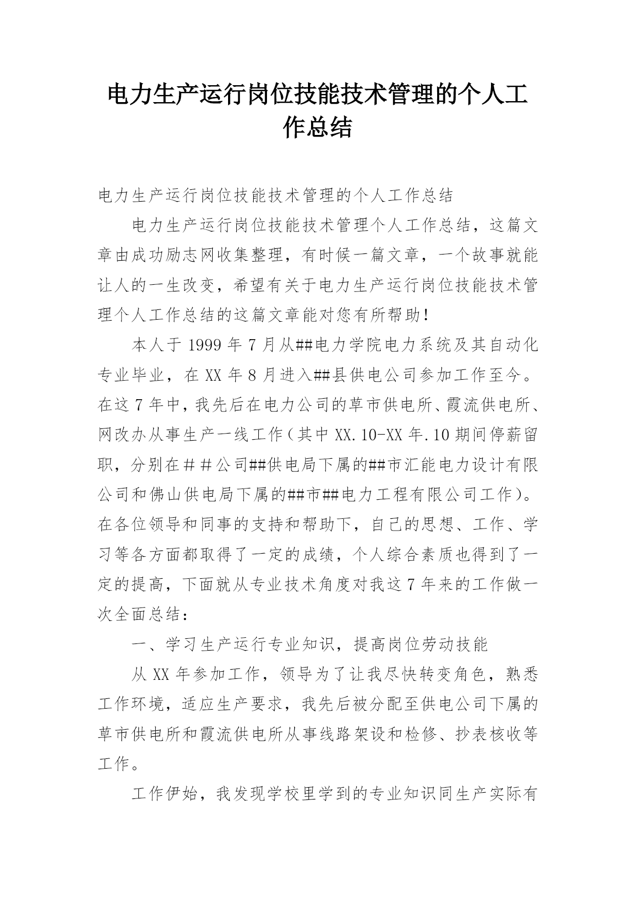电力生产运行岗位技能技术管理的个人工作总结.docx