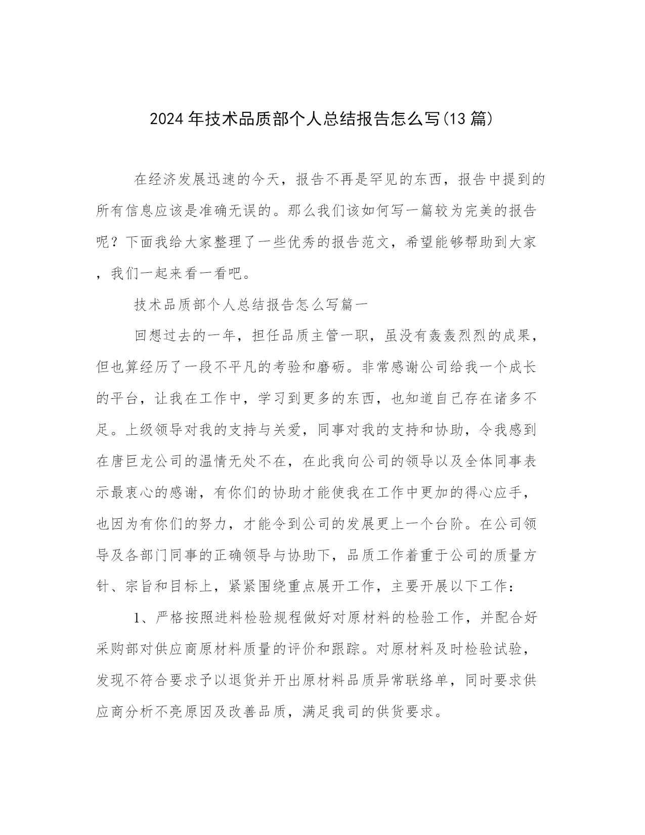 2024年技术品质部个人总结报告怎么写(13篇).docx