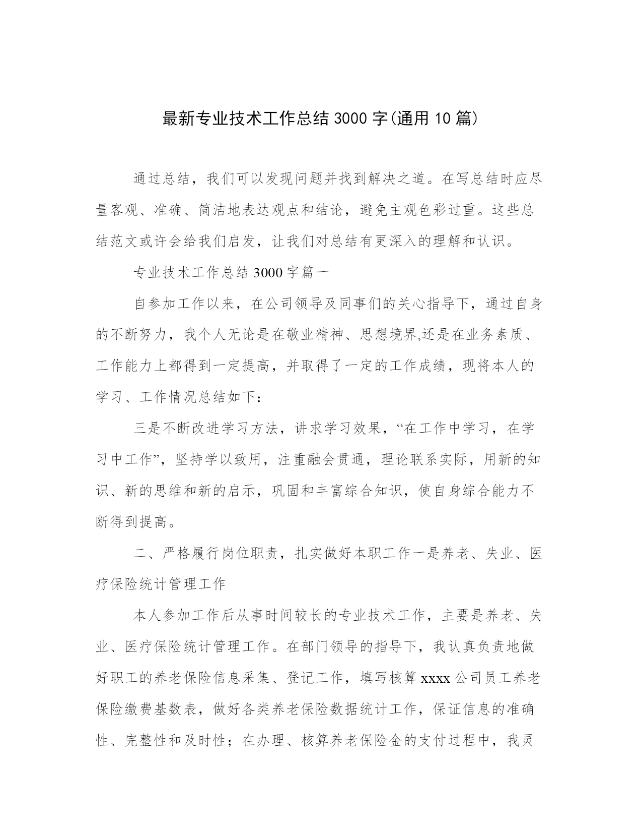 最新专业技术工作总结3000字(通用10篇)通过总结,我们可以发现问题并找到解决之道。在写总结时应尽量客观、准确、简洁地表达观点和结论,避免主观色彩过重。这些总结范文或许会给我们启发,让我们对总结有更深入的理解和认识。专业技术工作总结3000字篇一自参加工作以来,在公司领导及同事们的关心指导下,通过自身的不断努力,我个人无论是在敬业精神、思想境界,还是在业务素质、工作能力上都得到一定提高,并取得了一定的工作成绩,现将本人的学习、工作情况总结如下:三是不断改进学习方法,讲求学习效果,“在工作中学习,在学习中