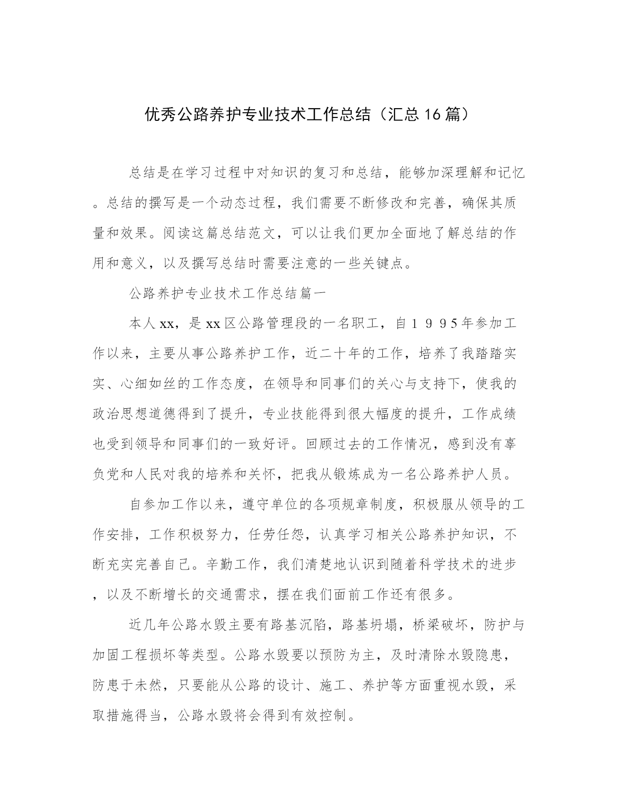 优秀公路养护专业技术工作总结(汇总16篇).docx