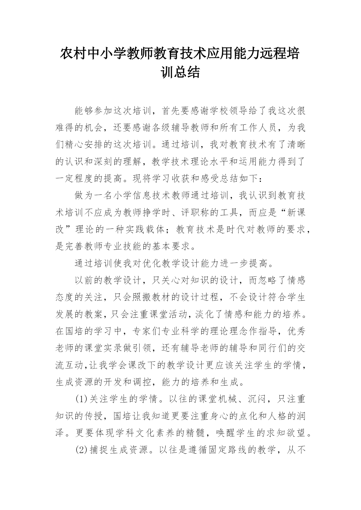 农村中小学教师教育技术应用能力远程培训总结.docx