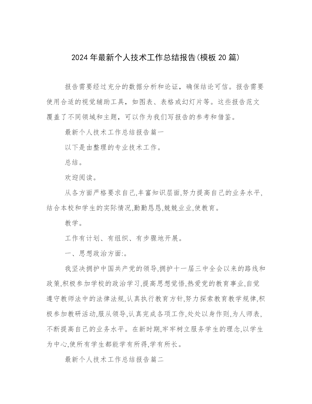 2024年最新个人技术工作总结报告(模板20篇).docx