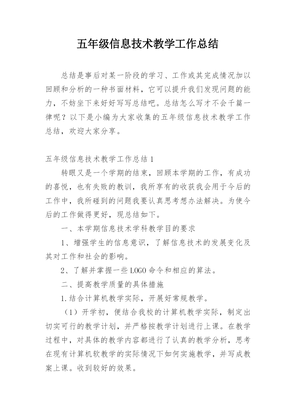 五年级信息技术教学工作总结.docx