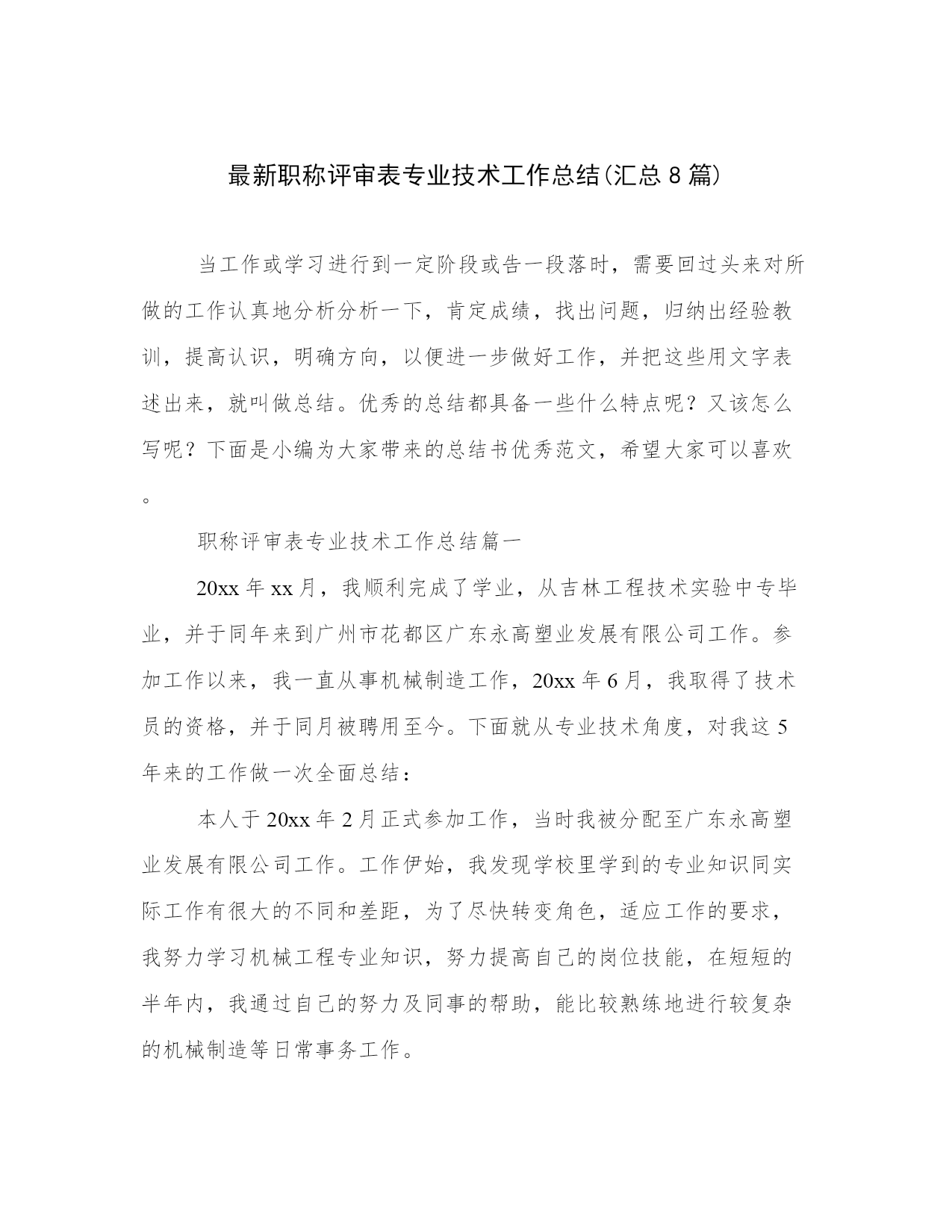 最新职称评审表专业技术工作总结(汇总8篇).docx