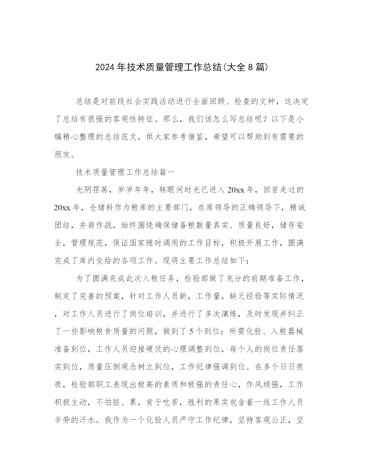 2024年技术质量管理工作总结(大全8篇).docx
