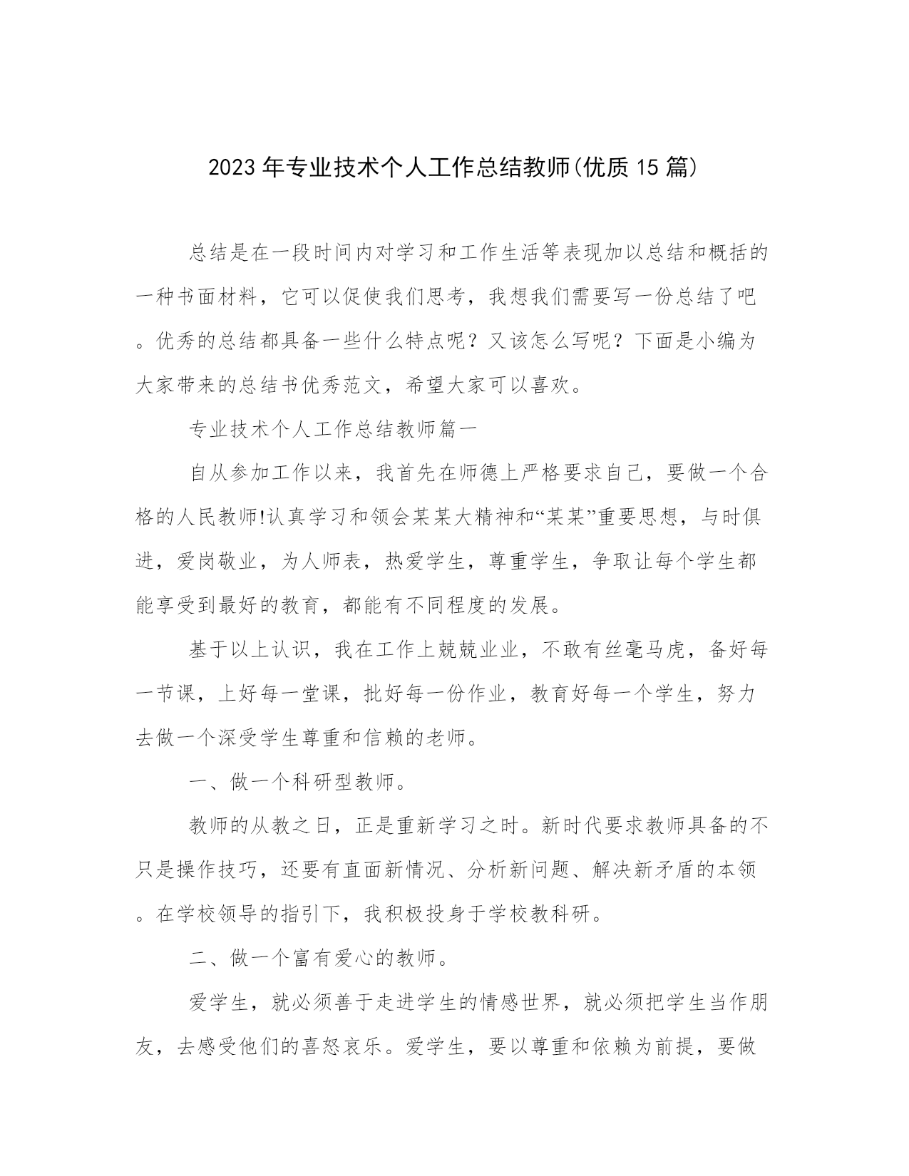 2023年专业技术个人工作总结教师(优质15篇).docx