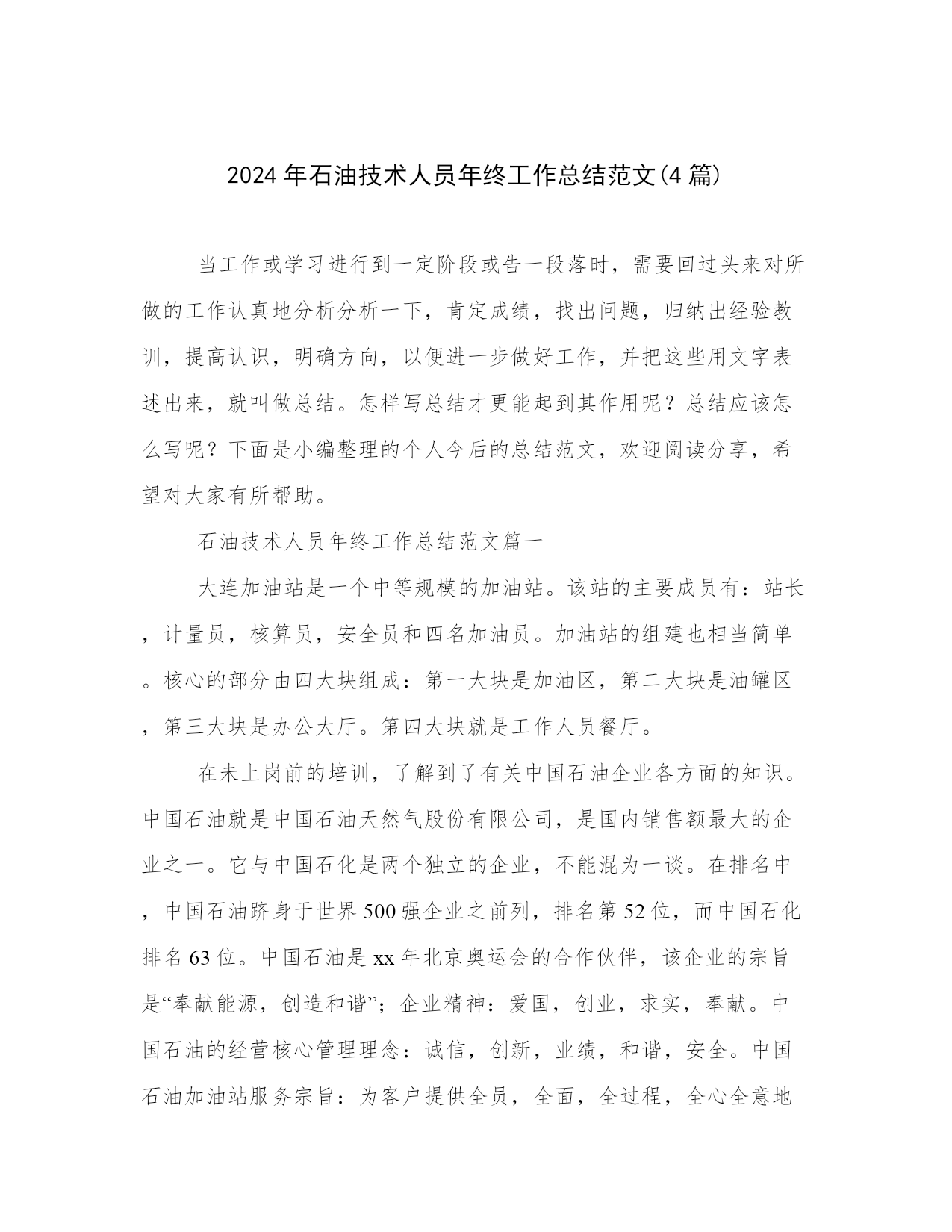 2024年石油技术人员年终工作总结范文(4篇).docx