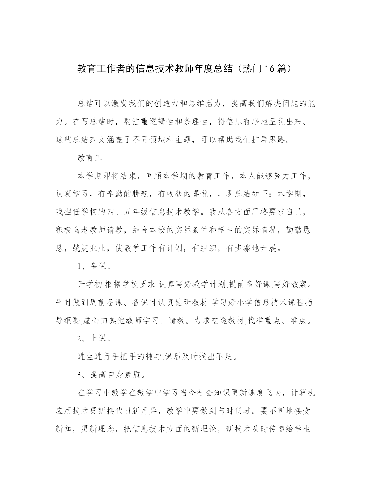 教育工作者的信息技术教师年度总结(热门16篇).docx