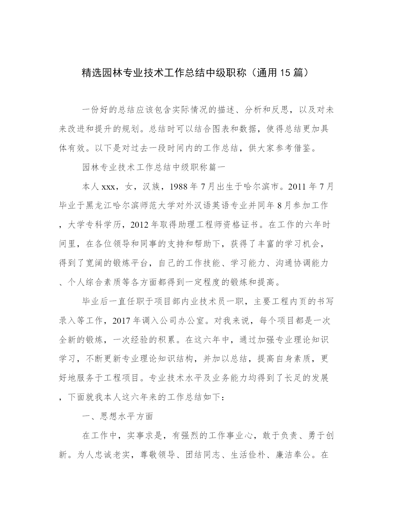 精选园林专业技术工作总结中级职称(通用15篇).docx