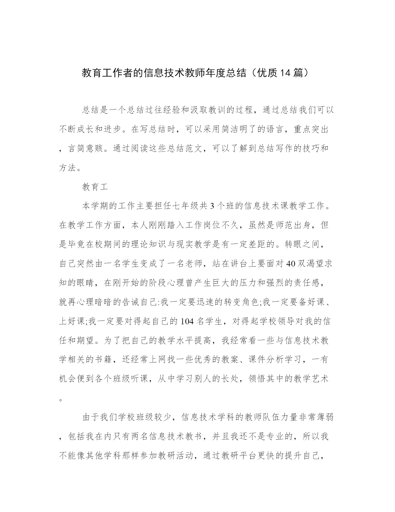 教育工作者的信息技术教师年度总结(优质14篇).docx
