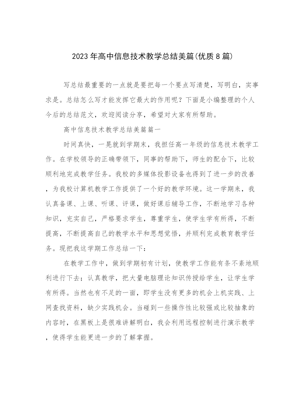 2023年高中信息技术教学总结美篇(优质8篇).docx