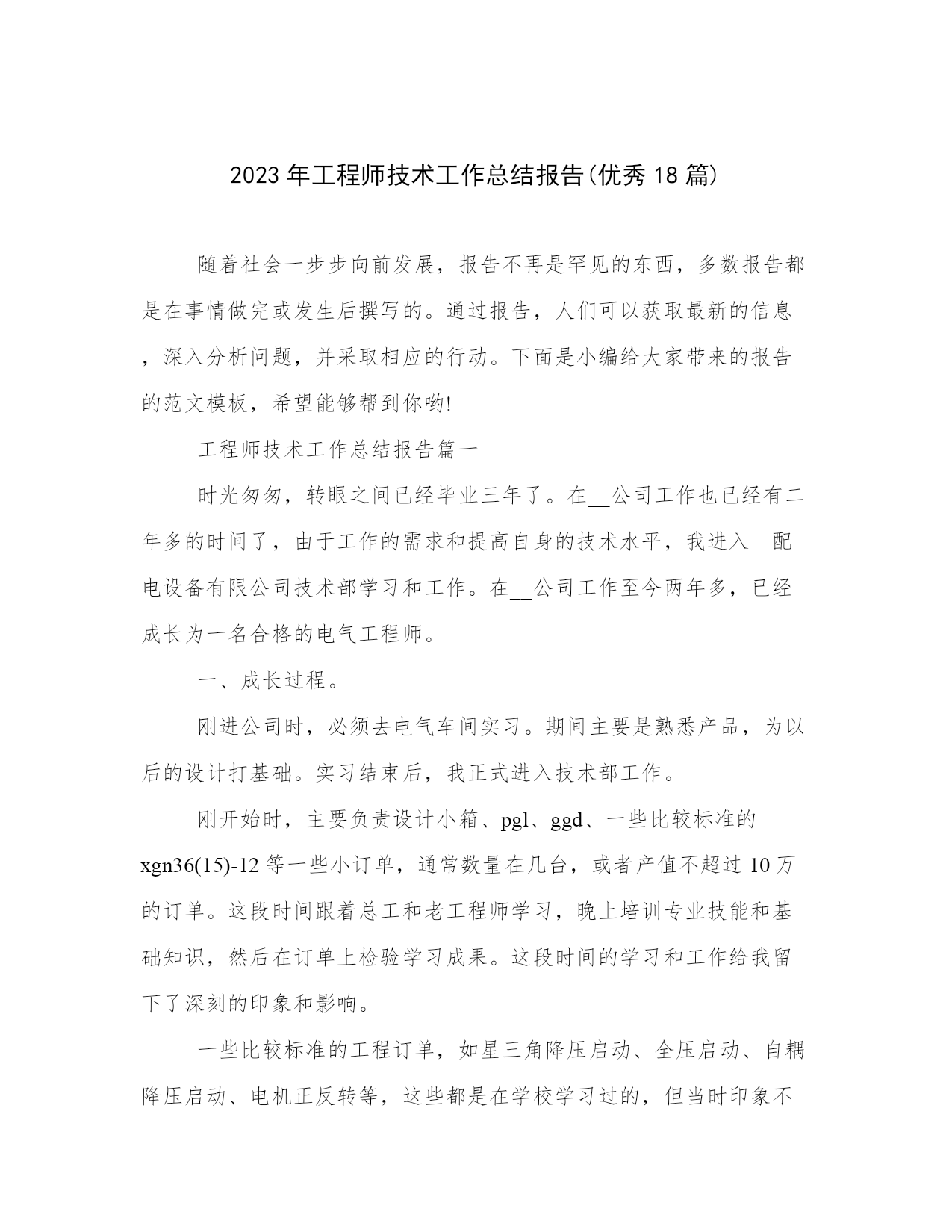 2023年工程师技术工作总结报告(优秀18篇).docx