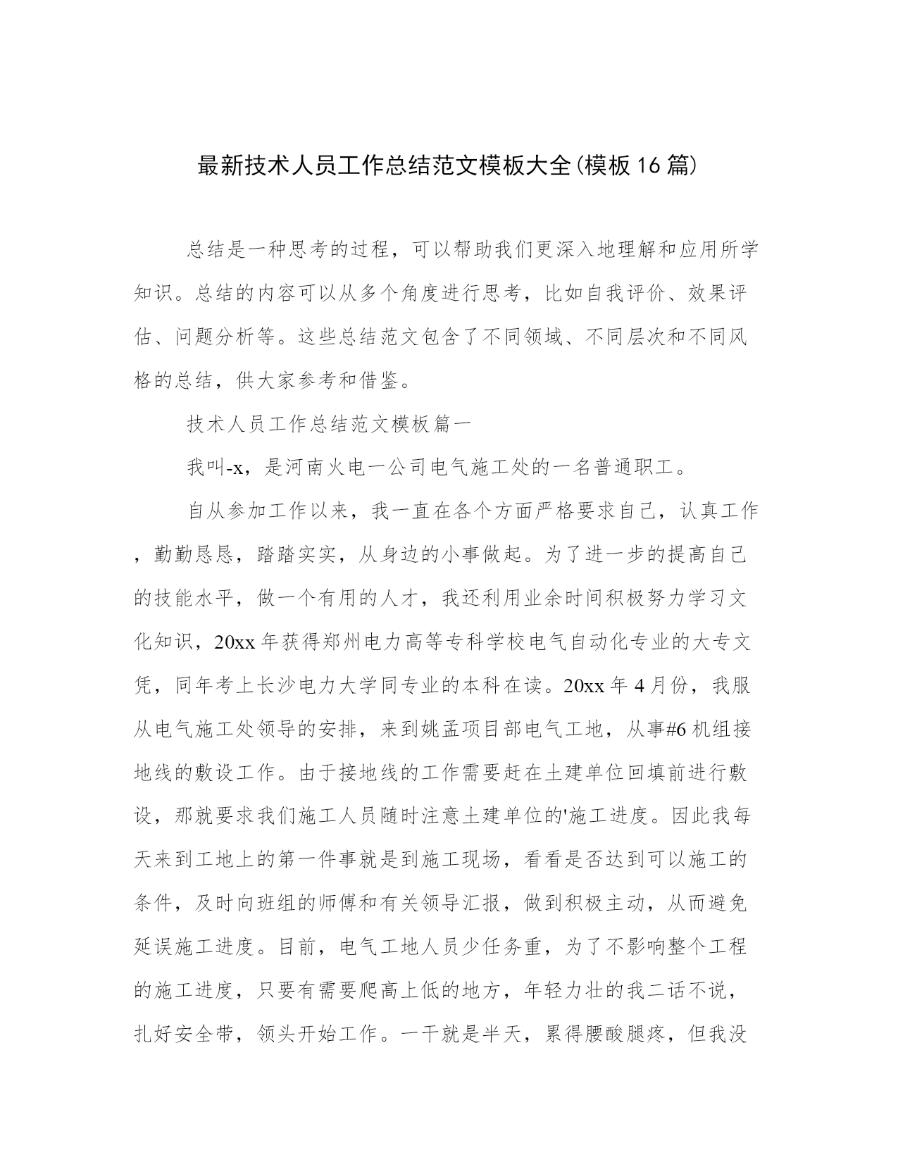 最新技术人员工作总结范文模板大全(模板16篇).docx