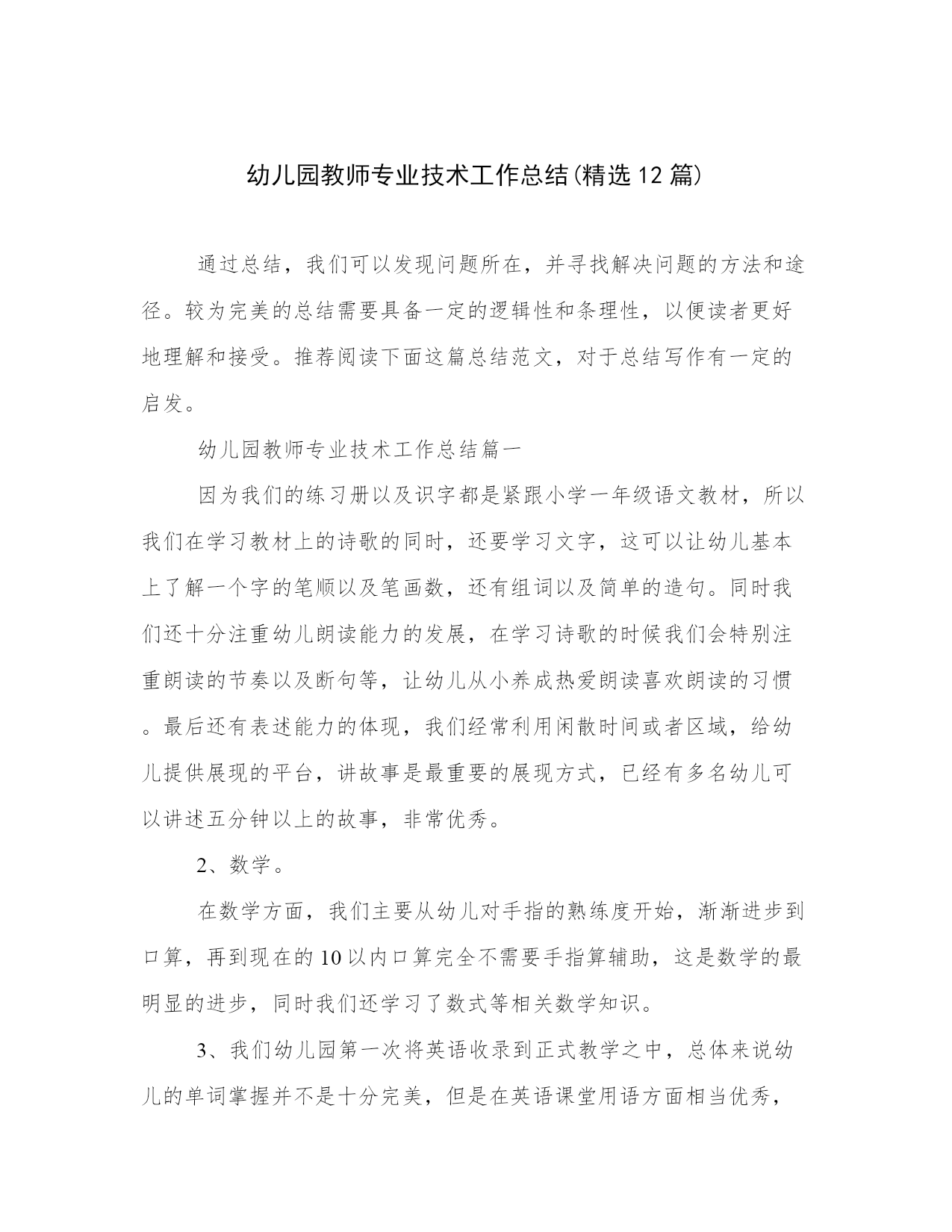 幼儿园教师专业技术工作总结(精选12篇).docx