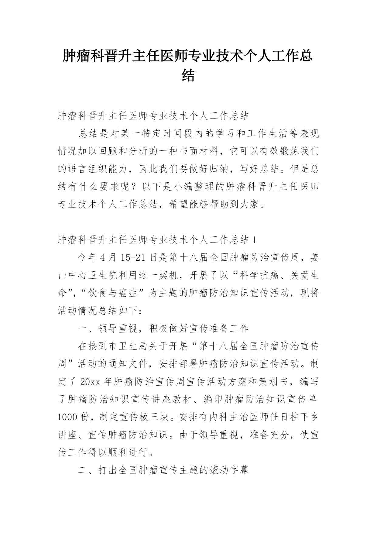 肿瘤科晋升主任医师专业技术个人工作总结.docx