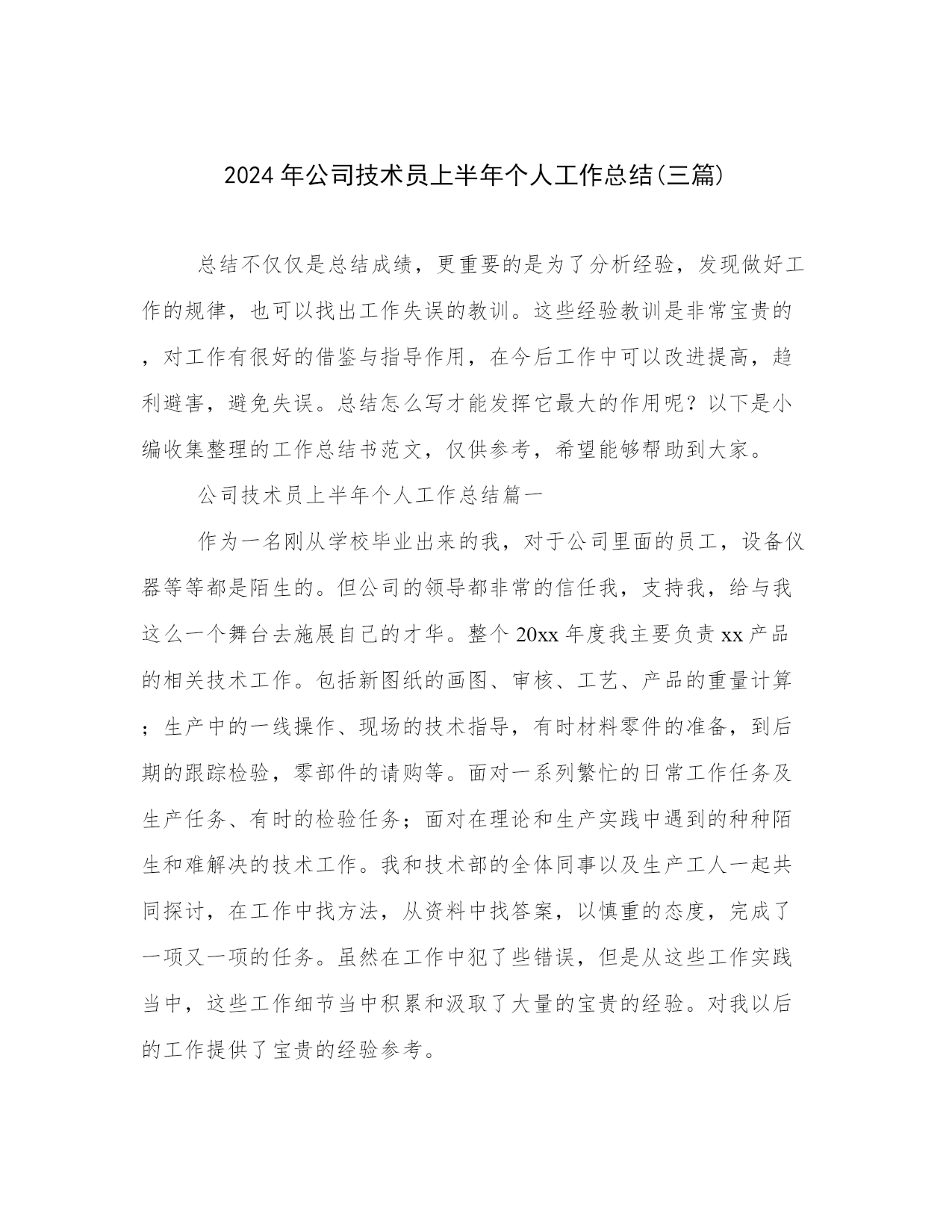 2024年公司技术员上半年个人工作总结(三篇).docx