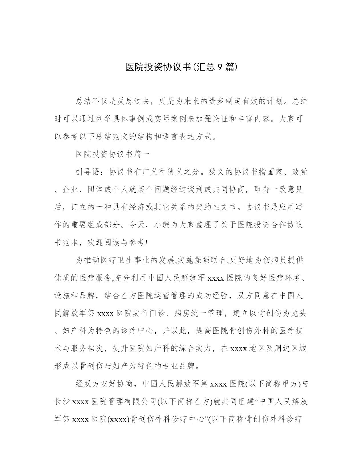 医院投资协议书(汇总9篇).docx