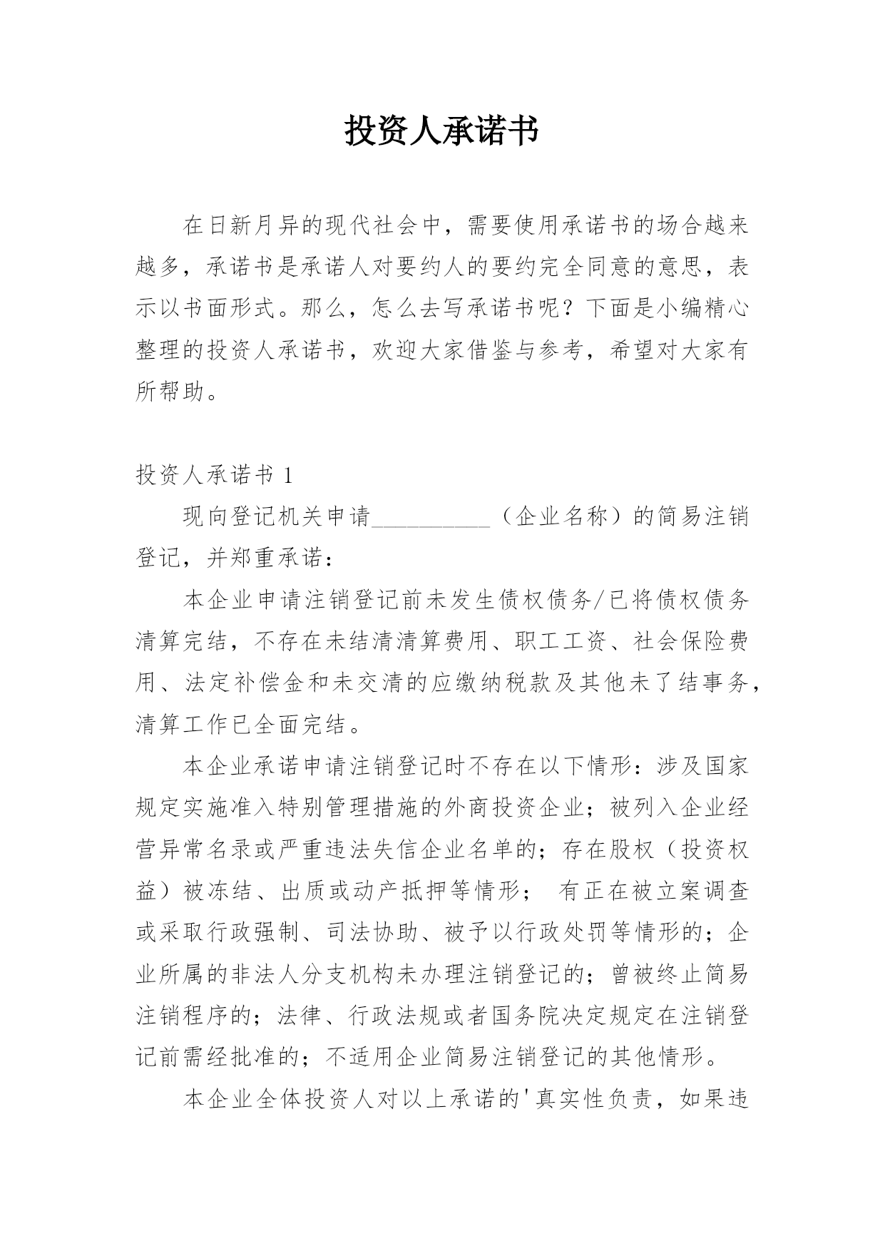 投资人承诺书精编.docx