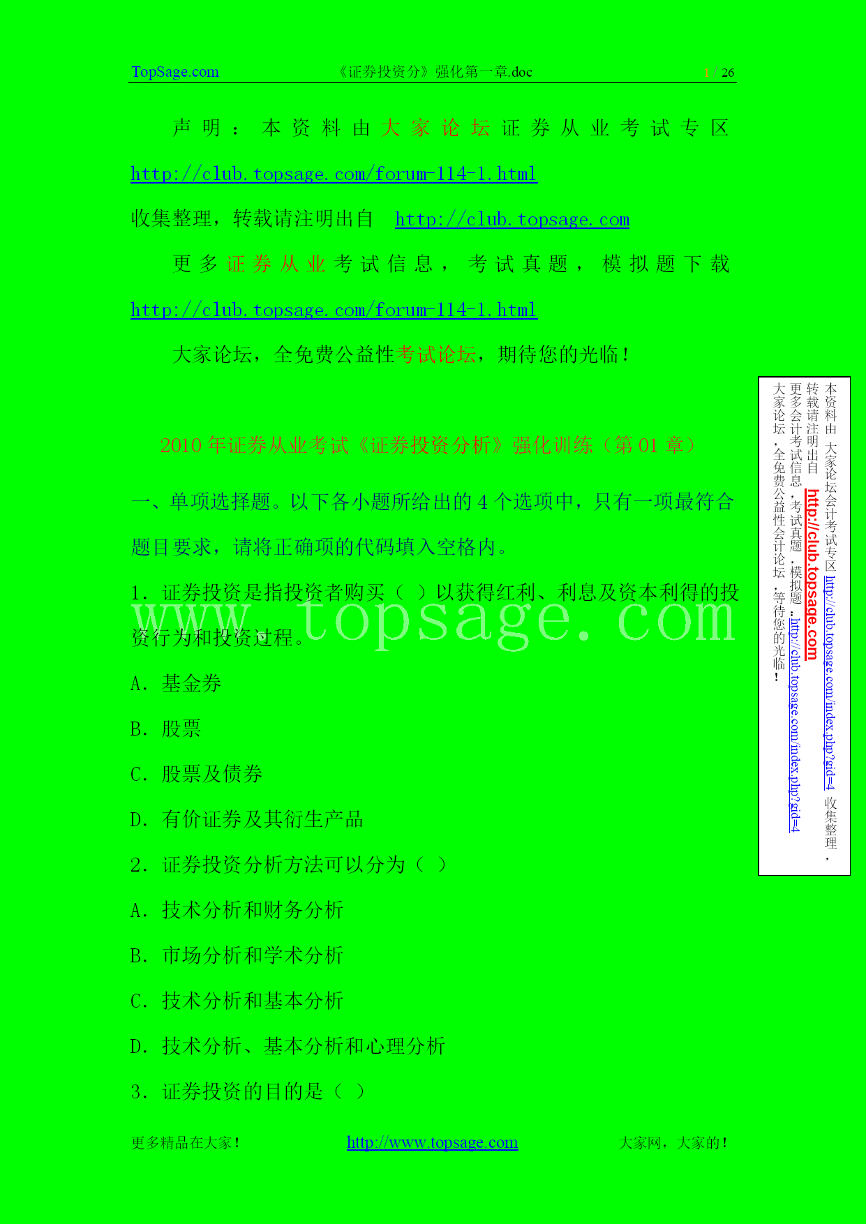 PAGE26/NUMPAGES26FILENAME《证券投资分》强化第一章.docTopSage.com本资料由大家论坛会计考试专区HYPERLINK"http://club.topsage.com/index.php?gid=4"http://club.topsage.com/index.php?gid=4收集整理,转载请注明出自HYPERLINK"http://club.topsage.com"http://club.topsage.com更多会计考试信息,考试真题,模拟