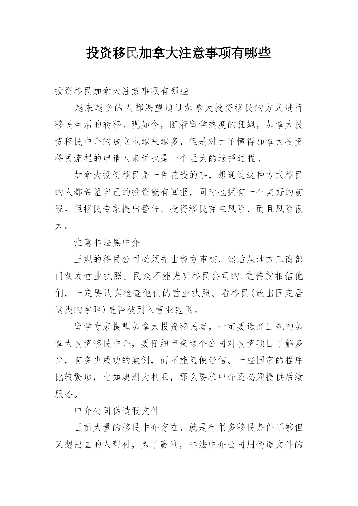 投资移民加拿大注意事项有哪些投资移民加拿大注意事项有哪些越来越多的人都渴望通过加拿大投资移民的方式进行移民生活的转移。现如今,随着留学热度的狂飙,加拿大投资移民中介的成立也越来越多,但是对于不懂得加拿大投资移民流程的申请人来说也是一个巨大的选择过程。加拿大投资移民是一件花钱的事,想通过这种方式移民的人都希望自己的投资能有回报,同时也拥有一个美好的前程。但移民专家提出警告,投资移民存在风险,而且风险很大。注意非法黑中介正规的移民公司必须先由警方审核,然后从地方工商部门获发营业执照。民众不能光听移民公司的.宣