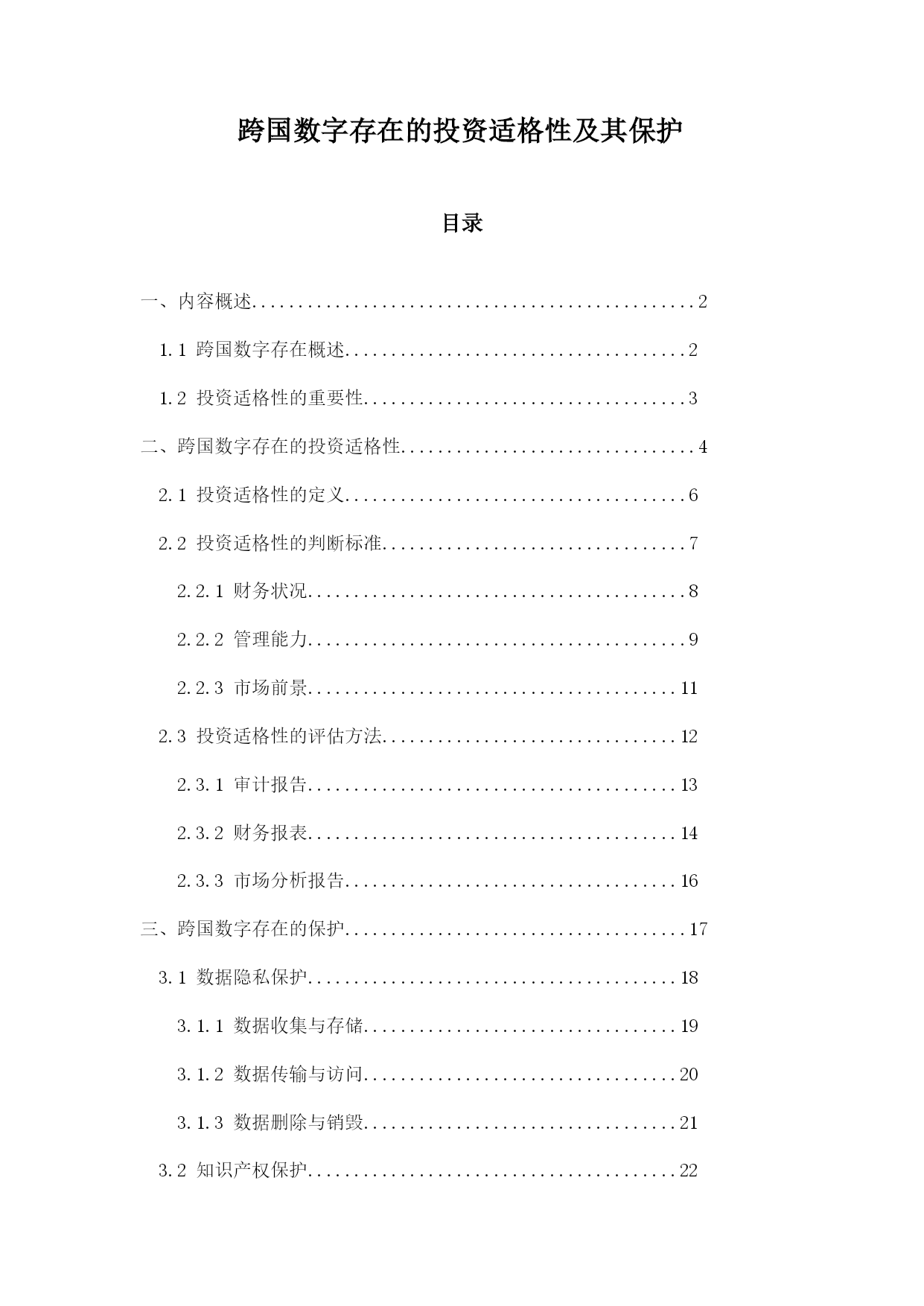 跨国数字存在的投资适格性及其保护目录一、内容概述................................................21.1跨国数字存在概述.....................................21.2投资适格性的重要性...................................3二、跨国数字存在的投资适格性................................42.1投资适格性的定义...........................