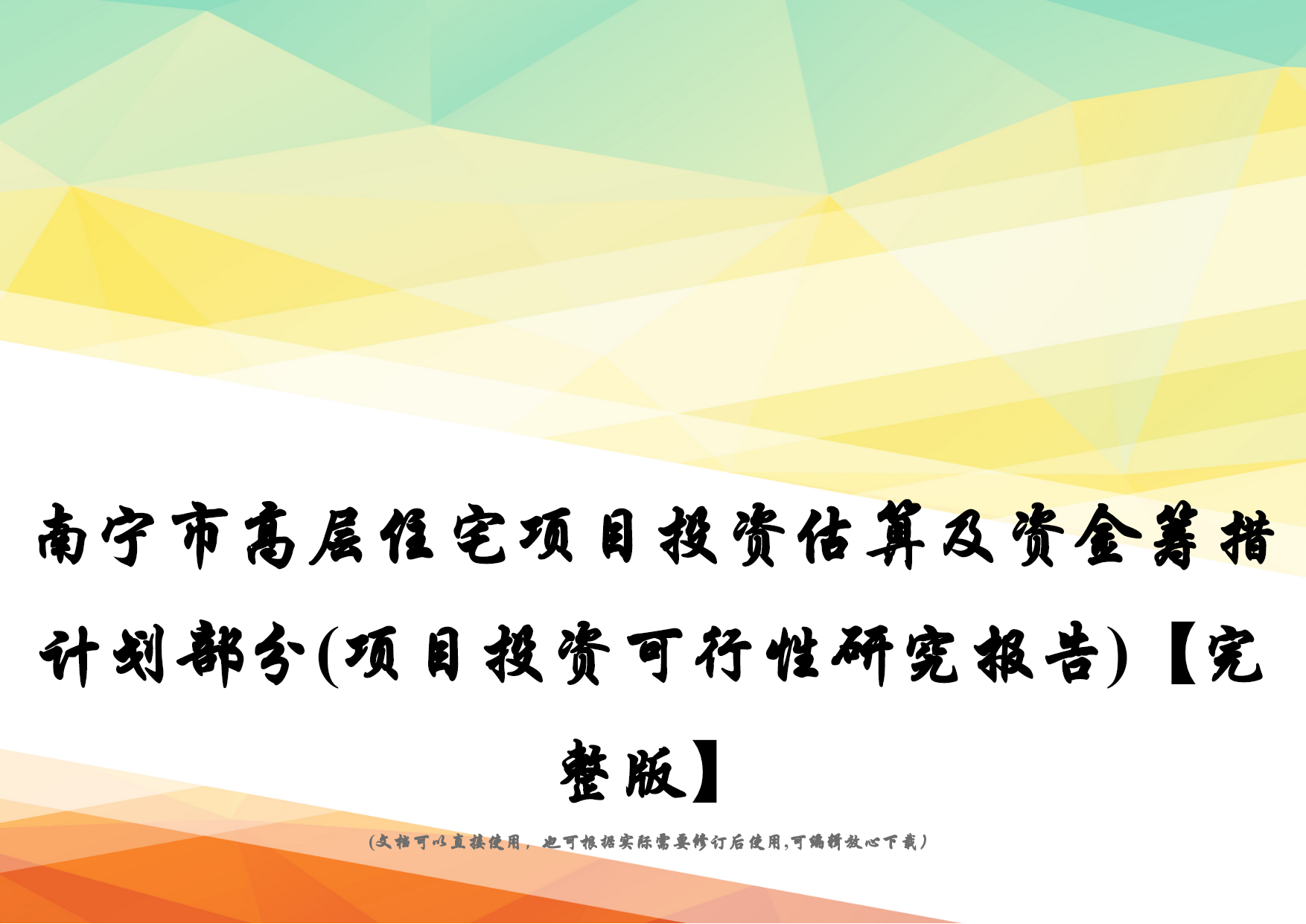 南宁市高层住宅项目投资估算及资金筹措计划部分(项目投资可行性研究报告).doc