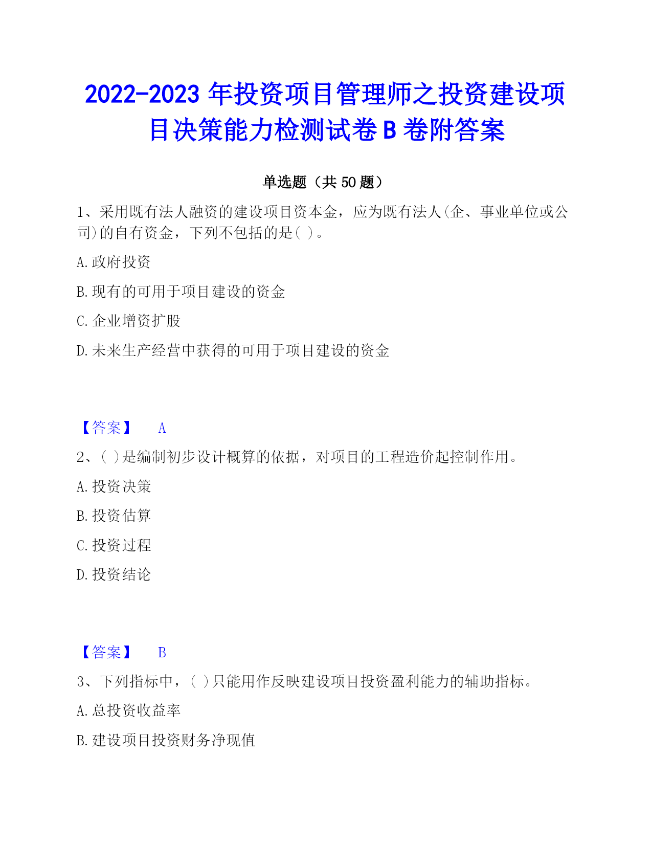 2022-2023年投资项目管理师之投资建设项目决策能力检测试卷B卷附答案.docx