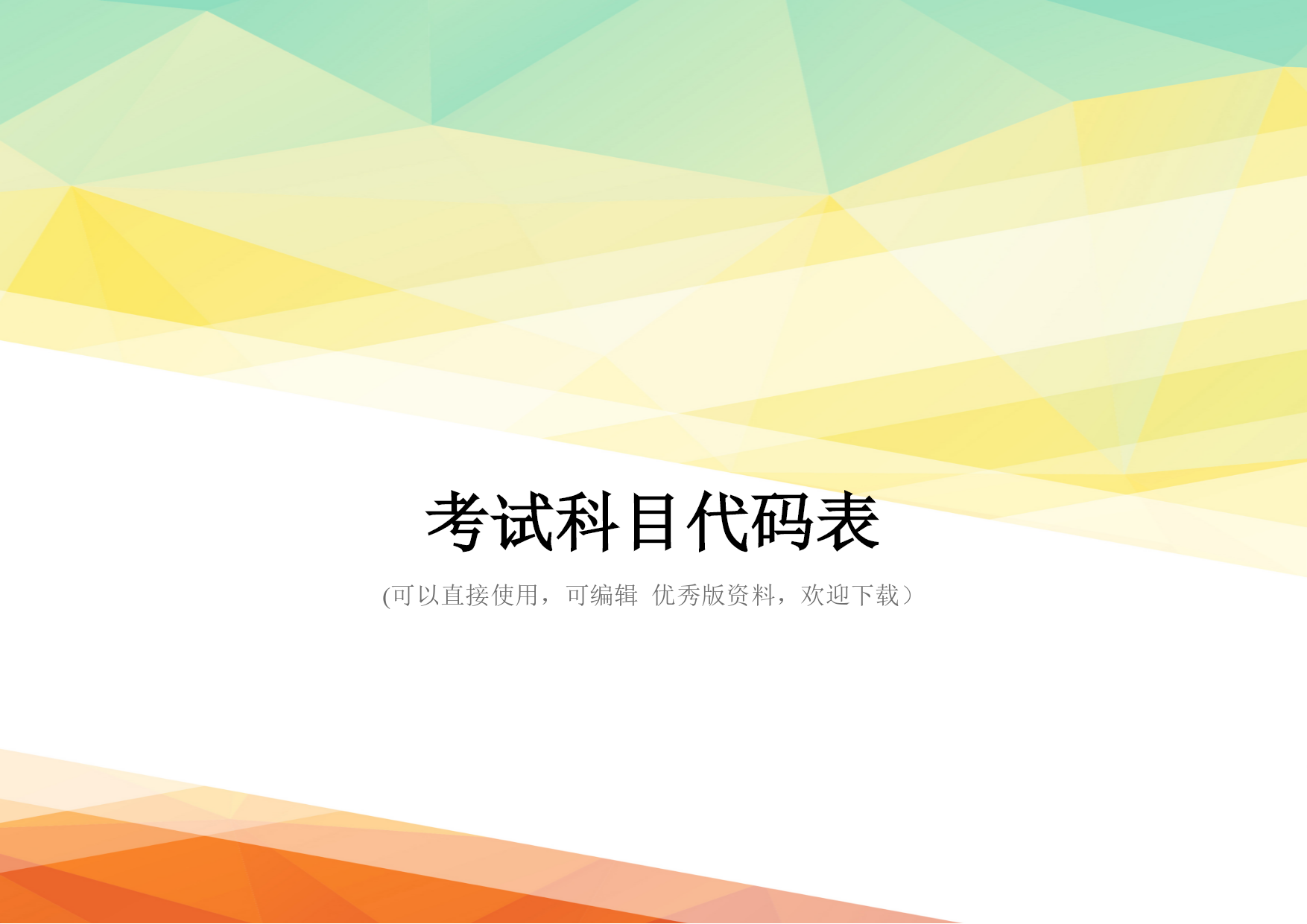 考试科目代码表(可以直接使用,可编辑优秀版资料,欢迎下载)考试科目代码表思想政治理论101英语翻译基础357自然辩证法原理801应用光学823环境科学概论844单独考试思想政治理论111经济学原理802材料科学基础(一)824有机化学(二)845马克思主义哲学711电子线路803材料科学基础(二)825运筹与管理846管理类联考综合能力199心理学712马克思主义发展简史804固体物理826企业管理学847基础英语713思想政治教育原理及方法论805材料成形基本原理827软件工程学科专业基础综合848英语