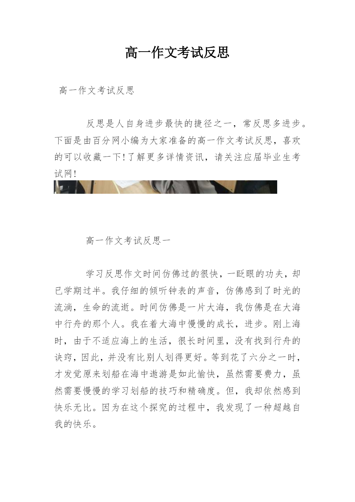高一作文考试反思高一作文考试反思反思是人自身进步最快的捷径之一,常反思多进步。下面是由百分网小编为大家准备的高一作文考试反思,喜欢的可以收藏一下!了解更多详情资讯,请关注应届毕业生考试网!高一作文考试反思一学习反思作文时间仿佛过的很快,一眨眼的功夫,却已学期过半。我仔细的倾听钟表的声音,仿佛感到了时光的流淌,生命的流逝。时间仿佛是一片大海,我仿佛是在大海中行舟的那个人。我在着大海中慢慢的成长,进步。刚上海时,由于不适应海上的生活,很长时间里,没有找到行舟的诀窍,因此,并没有比别人划得更好。等到花了六分之一