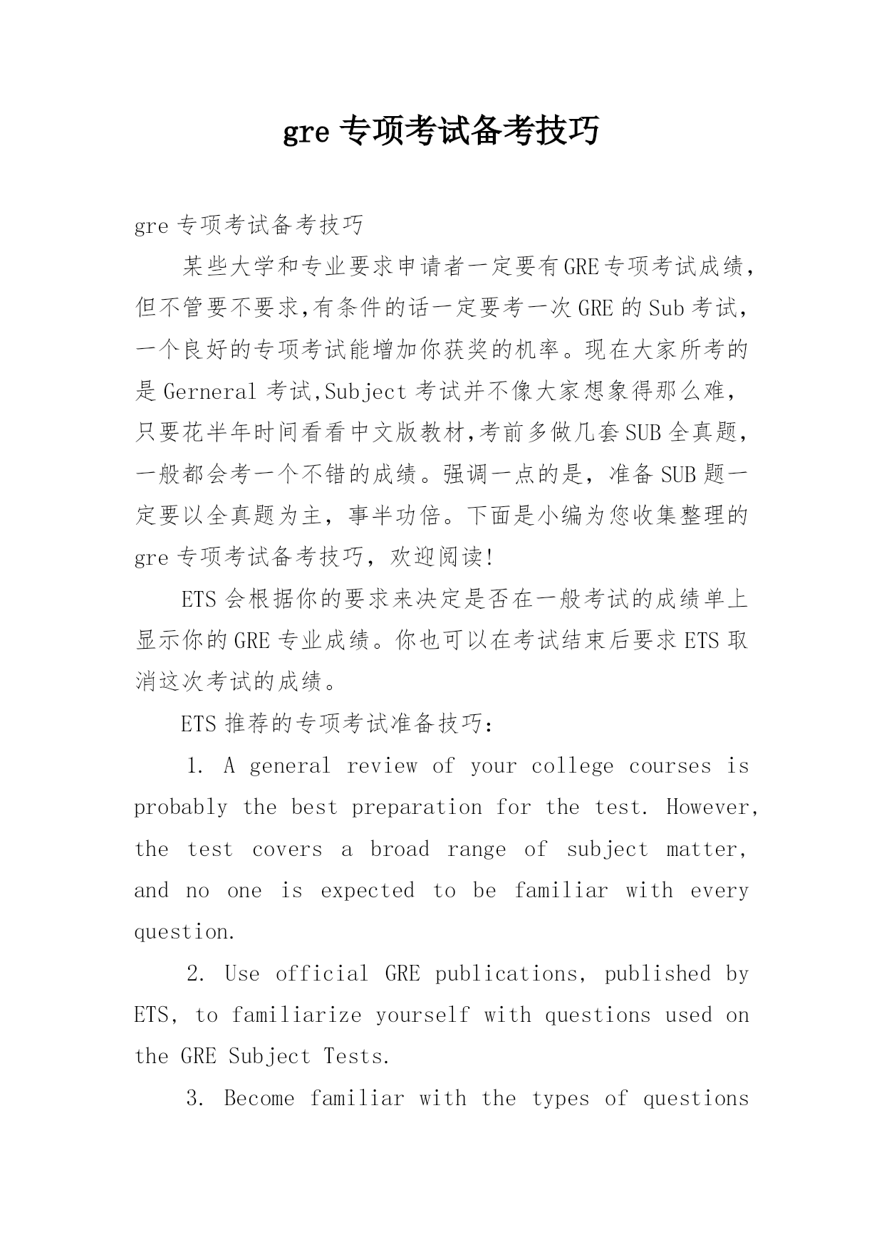 gre专项考试备考技巧.docx