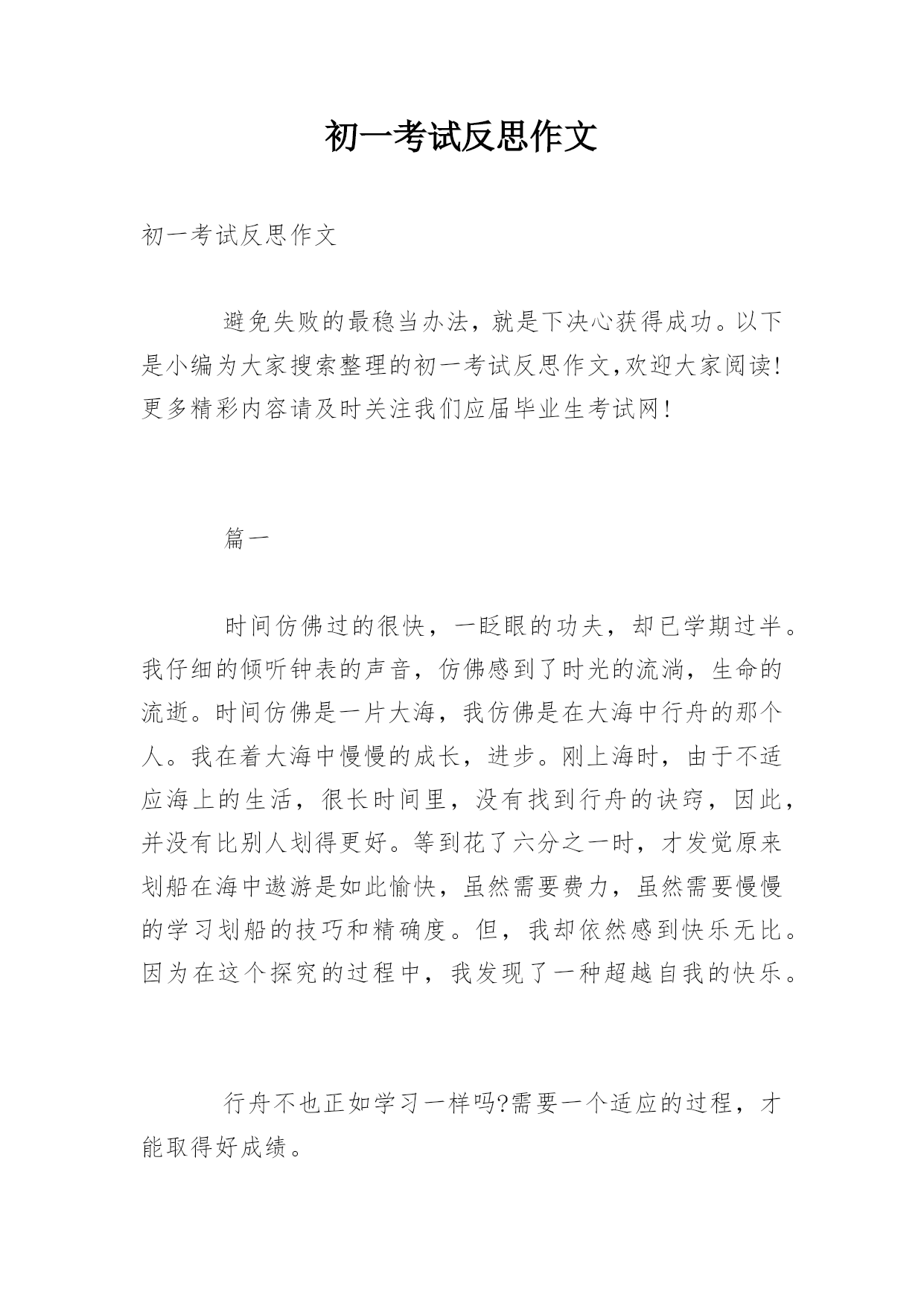 初一考试反思作文初一考试反思作文避免失败的最稳当办法,就是下决心获得成功。以下是小编为大家搜索整理的初一考试反思作文,欢迎大家阅读!更多精彩内容请及时关注我们应届毕业生考试网!篇一时间仿佛过的很快,一眨眼的功夫,却已学期过半。我仔细的倾听钟表的声音,仿佛感到了时光的流淌,生命的流逝。时间仿佛是一片大海,我仿佛是在大海中行舟的那个人。我在着大海中慢慢的成长,进步。刚上海时,由于不适应海上的生活,很长时间里,没有找到行舟的诀窍,因此,并没有比别人划得更好。等到花了六分之一时,才发觉原来划船在海中遨游是如此愉快