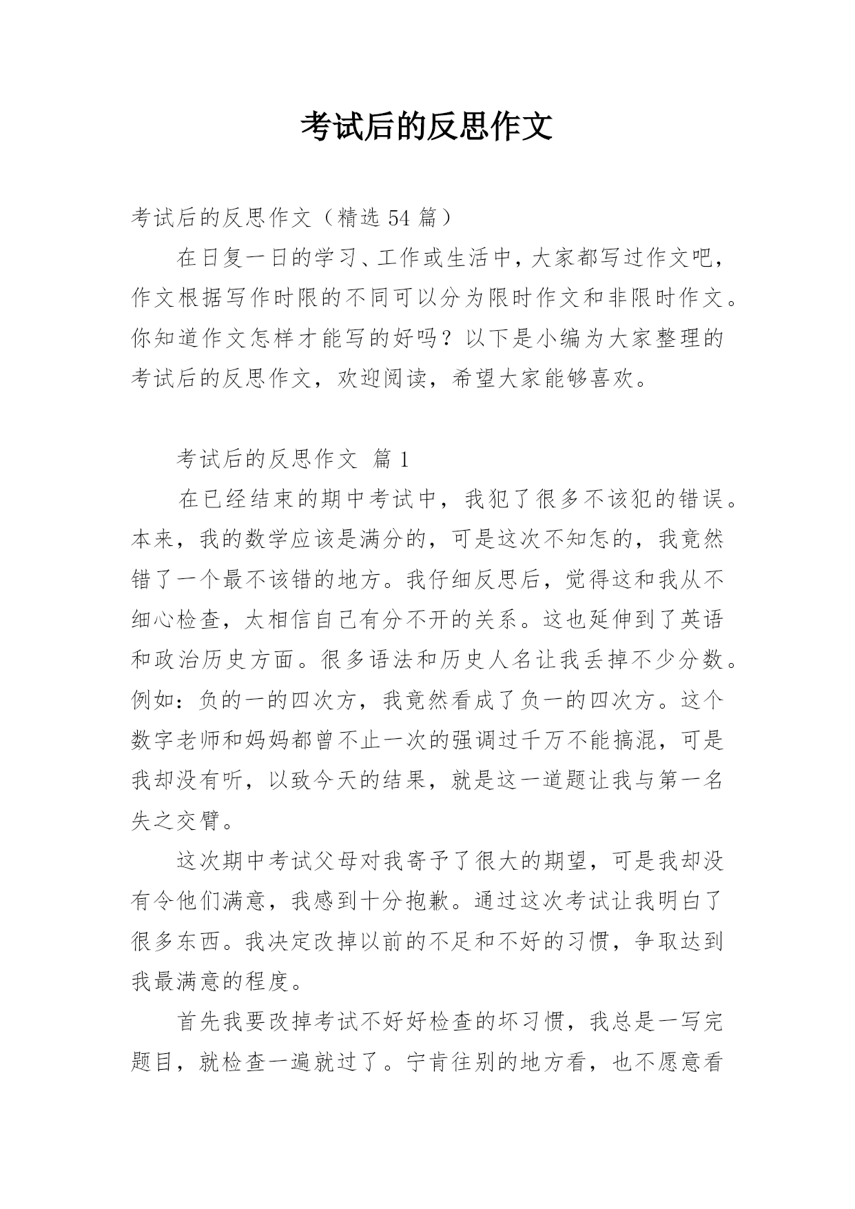 考试后的反思作文考试后的反思作文(精选54篇)在日复一日的学习、工作或生活中,大家都写过作文吧,作文根据写作时限的不同可以分为限时作文和非限时作文。你知道作文怎样才能写的好吗?以下是小编为大家整理的考试后的反思作文,欢迎阅读,希望大家能够喜欢。考试后的反思作文篇1在已经结束的期中考试中,我犯了很多不该犯的错误。本来,我的数学应该是满分的,可是这次不知怎的,我竟然错了一个最不该错的地方。我仔细反思后,觉得这和我从不细心检查,太相信自己有分不开的关系。这也延伸到了英语和政治历史方面。很多语法和历史人名让我丢掉