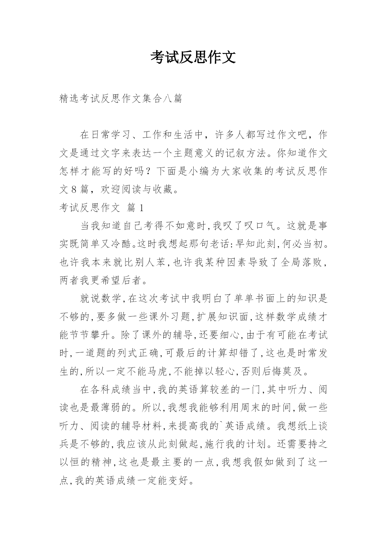 考试反思作文精选考试反思作文集合八篇在日常学习、工作和生活中,许多人都写过作文吧,作文是通过文字来表达一个主题意义的记叙方法。你知道作文怎样才能写的好吗?下面是小编为大家收集的考试反思作文8篇,欢迎阅读与收藏。考试反思作文篇1当我知道自己考得不如意时,我叹了叹口气。这就是事实既简单又冷酷。这时我想起那句老话:早知此刻,何必当初。也许我本来就比别人苯,也许我某种因素导致了全局落败,两者我更希望后者。就说数学,在这次考试中我明白了单单书面上的知识是不够的,要多做一些课外习题,扩展知识面,这样数学成绩才能节节攀