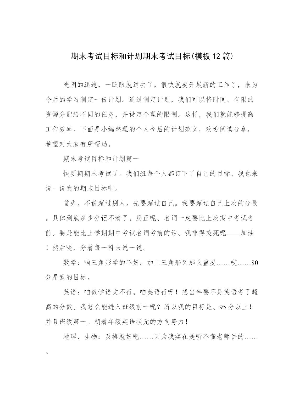 期末考试目标和计划期末考试目标(模板12篇).docx