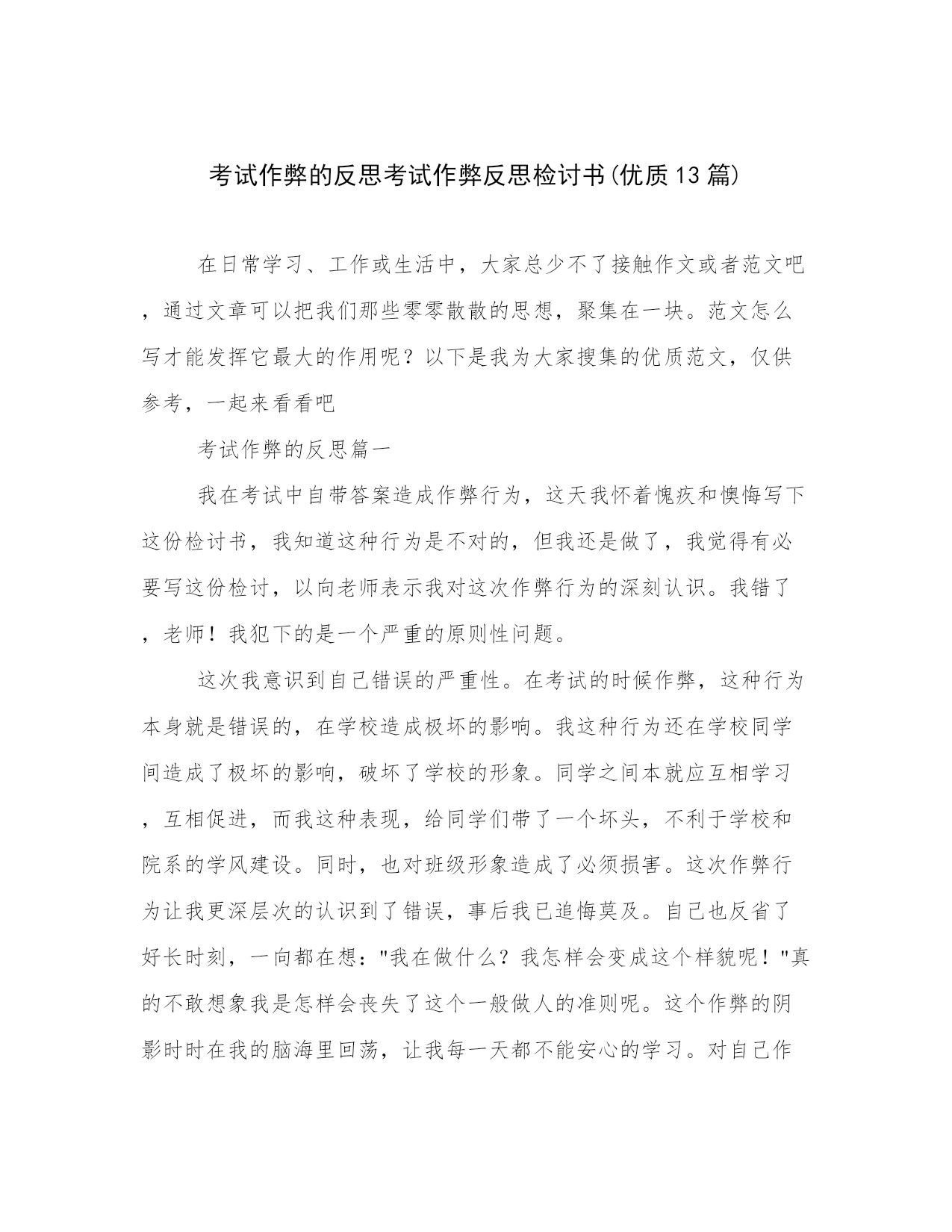 考试作弊的反思考试作弊反思检讨书(优质13篇).docx