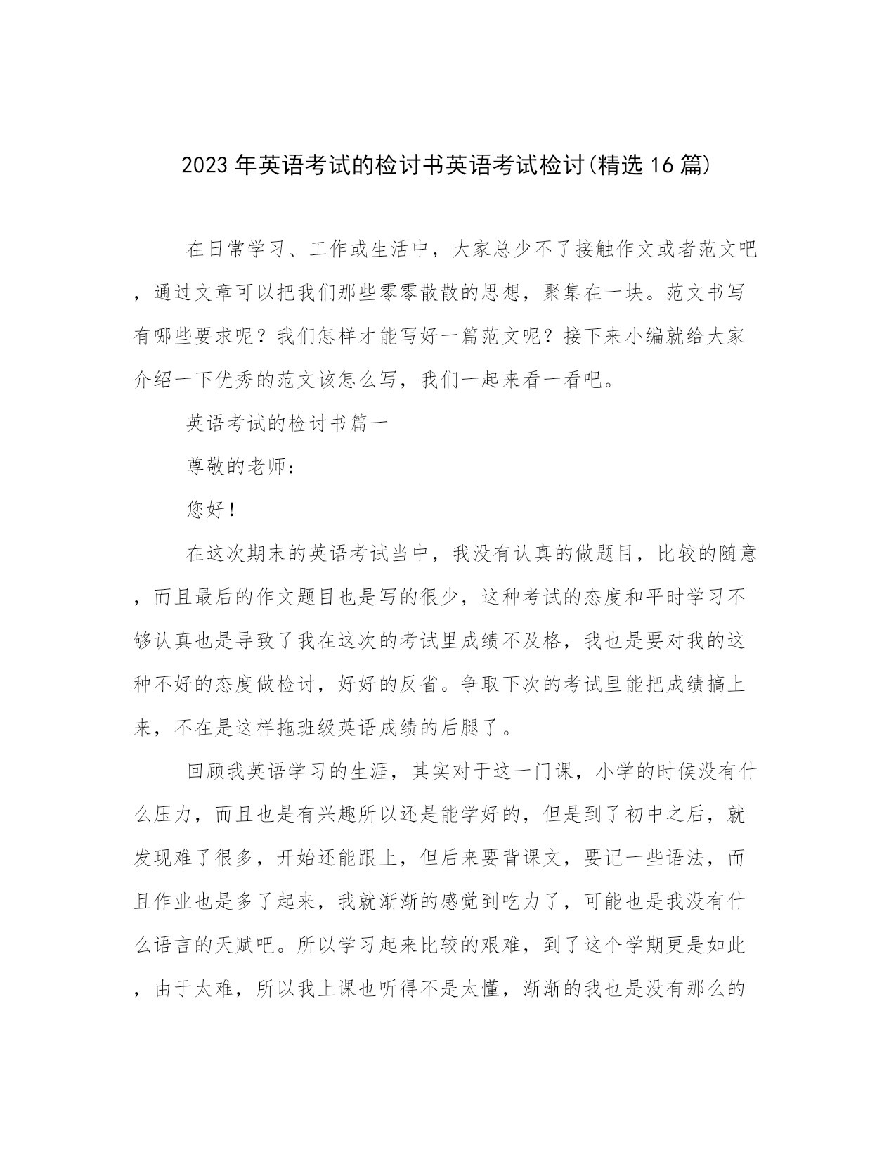 2023年英语考试的检讨书英语考试检讨(精选16篇).docx