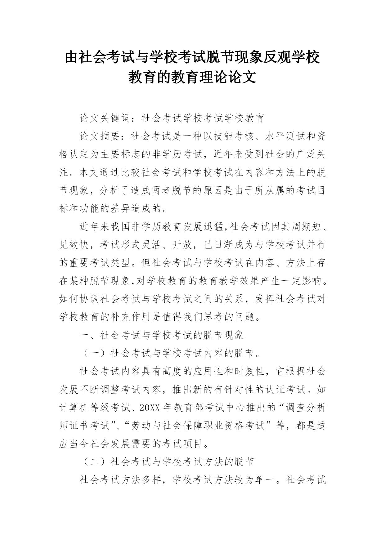 由社会考试与学校考试脱节现象反观学校教育的教育理论论文.docx