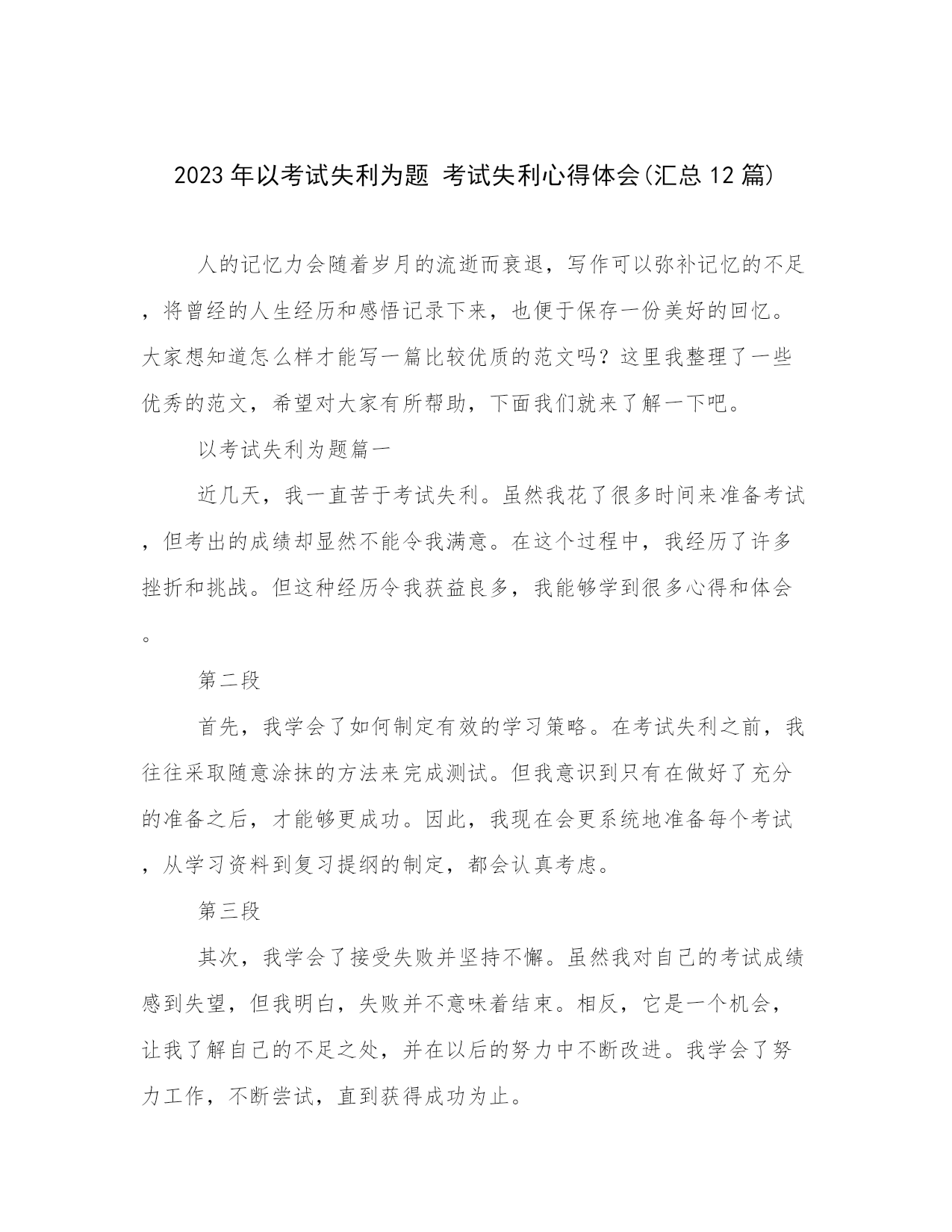 2023年以考试失利为题 考试失利心得体会(汇总12篇).docx