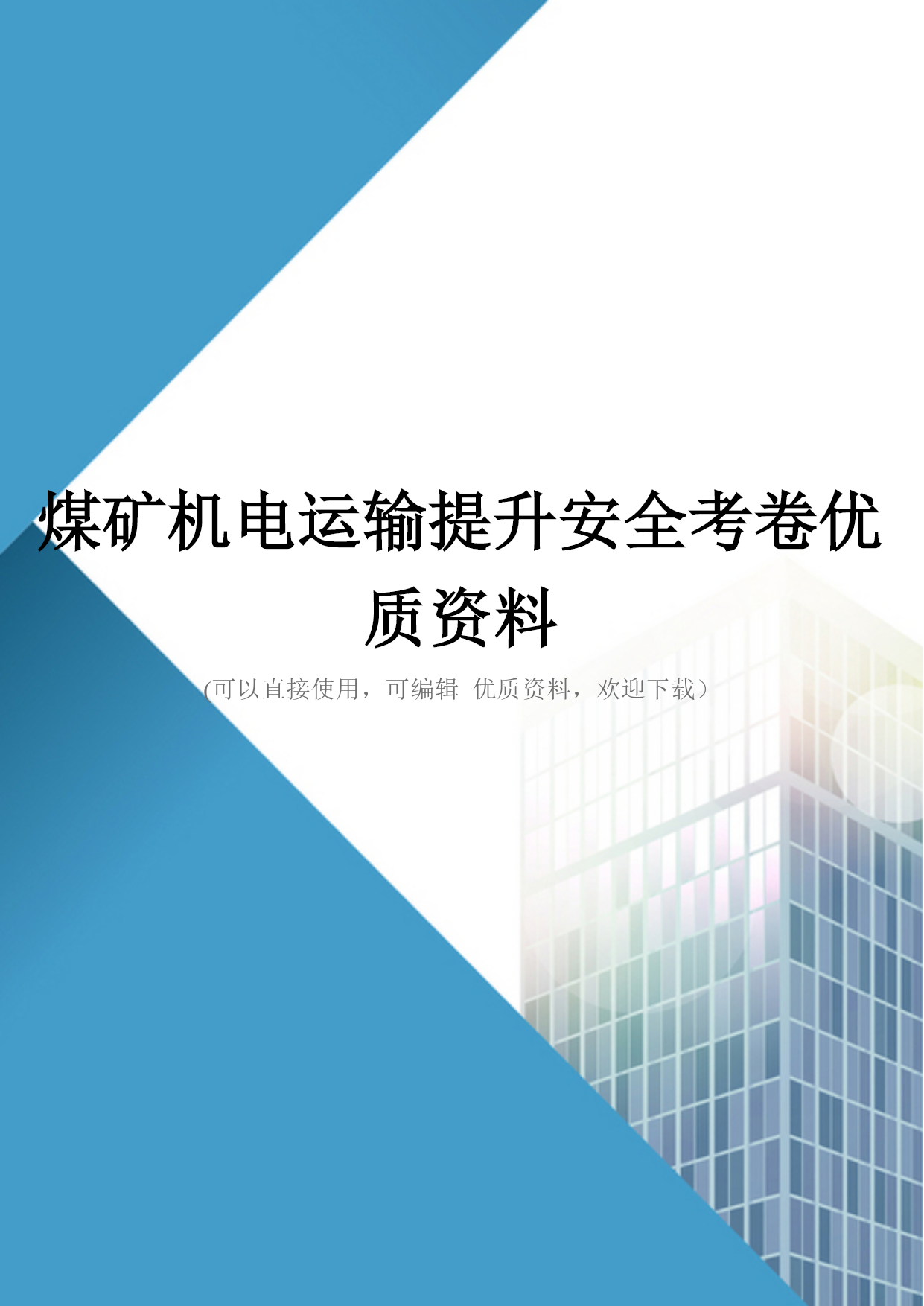 煤矿机电运输提升安全考卷优质资料(可以直接使用,可编辑优质资料,欢迎下载)第七部分煤矿机电运输提升安全一、判断题1.在每次更换立井提升钢丝绳时,必须对连接装置的主要受力部件进行探伤检验,合格后方可继续使用。(√)2.立井使用罐笼提升时,井口安全门必须与罐位和提升信号联锁。(√)3.滚筒驱动的带式输送机可以不使用阻燃输送带。(×)4.倾斜井巷内使用串车提升时,必须在倾斜井巷内安设能够将运行中断绳、脱钩的车辆阻止住的跑车防护装置。(√)5.使用耙装机在拐弯巷道装(岩)煤时,为了保证安全,在拐弯处钢丝绳内侧必须