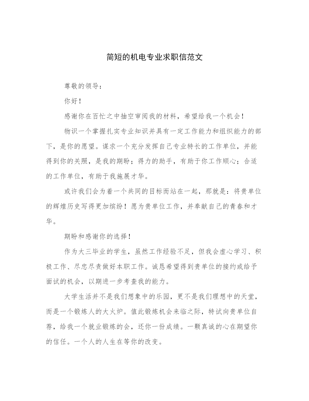 简短的机电专业求职信范文.docx