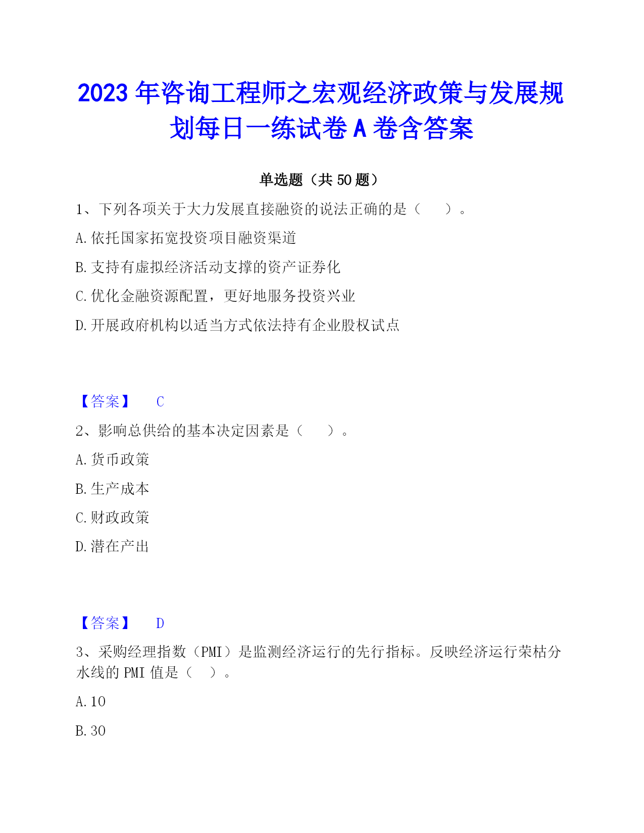 2023年咨询工程师之宏观经济政策与发展规划每日一练试卷A卷含答案.docx