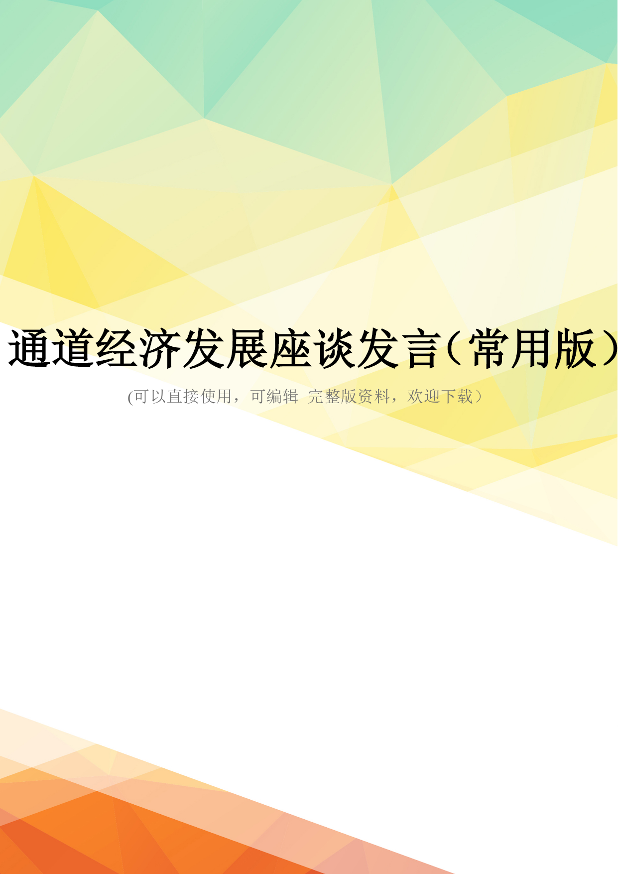 通道经济发展座谈发言(常用版)(可以直接使用,可编辑完整版资料,欢迎下载)通道经济专题座谈会发言尊敬的纳书记,各位领导:按照座谈会的安排,我就通道经济问题做个简要发言。不当之处,请批评指正。2007年11月省政府召开文山现场办公会议强调,加快文山通道经济发展通,重点要做好六个方面的工作:一是要立足于服从和服务中国连接东南亚、南亚国际大通道建设的目标,加强基础设施建设,构筑通边达海大通道;二是要围绕解决“三农”问题和推进城乡统筹发展等关键工作,进一步做大做强四大产业,奠定通道经济的产业基础;三是要转变经济发