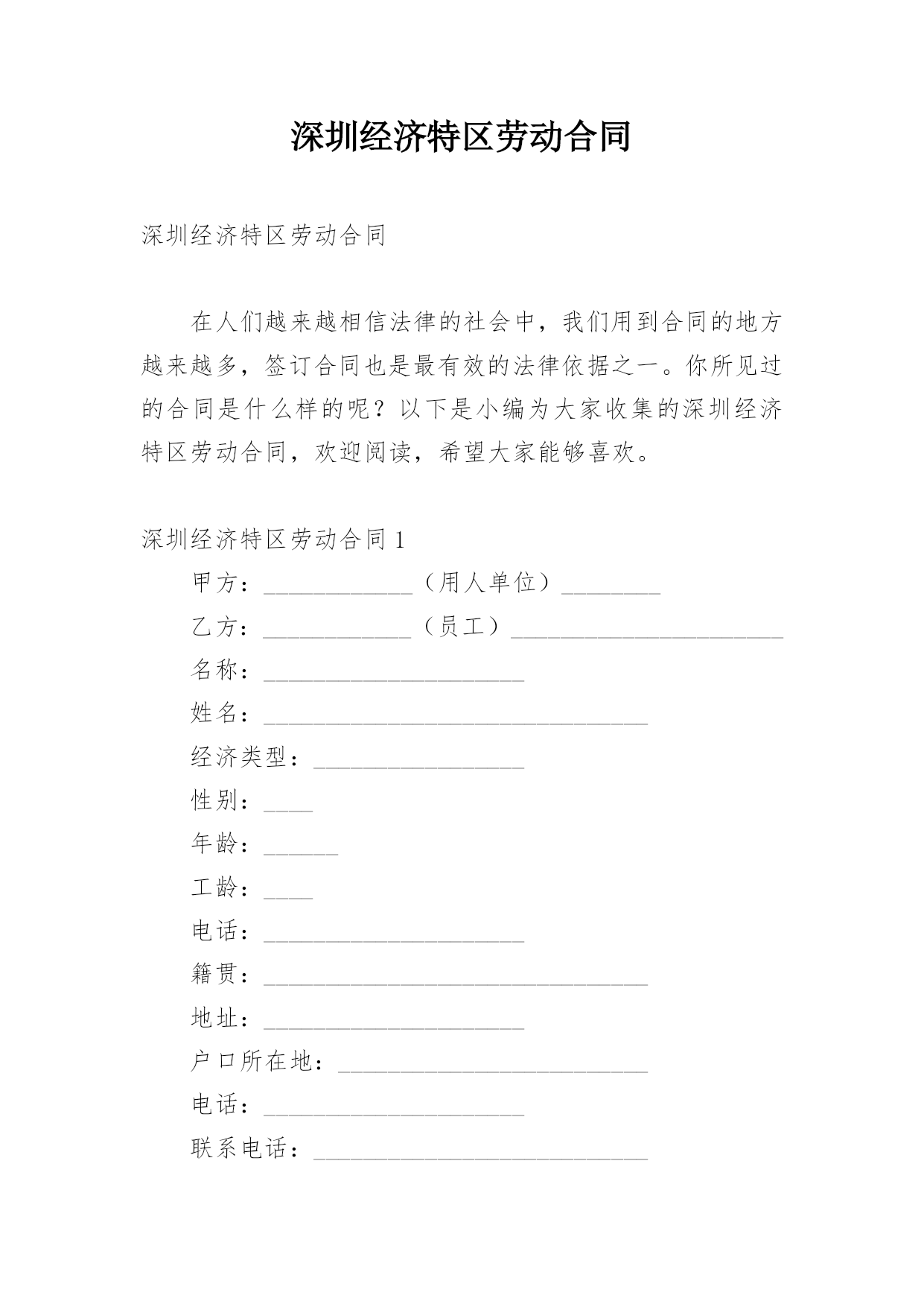 深圳经济特区劳动合同.docx