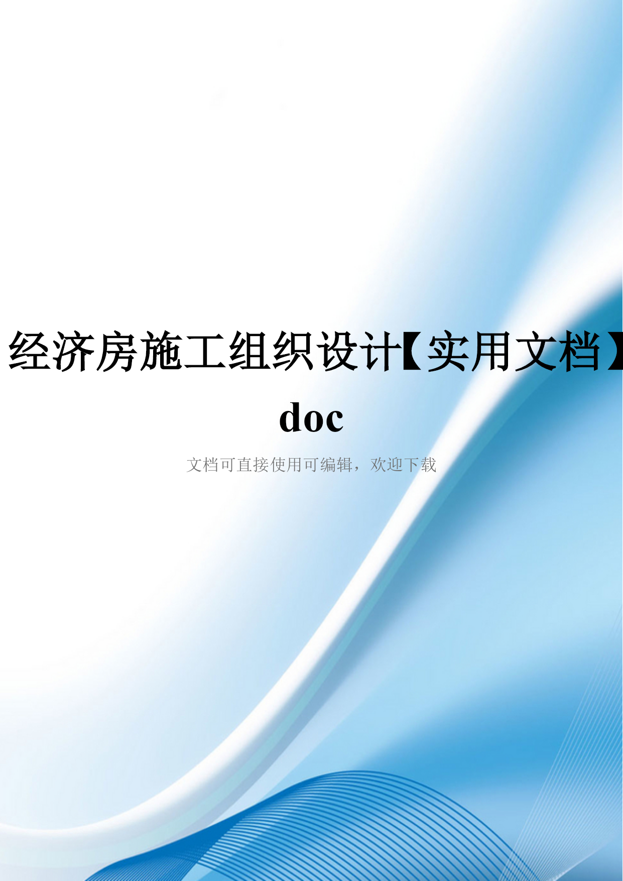 经济房施工组织设计【实用文档】doc文档可直接使用可编辑,欢迎下载施工组织设计(施工方案)工程概况、及基本要求1、工程结构:框架结构、灌注桩基础2、工程内容、范围:图纸范围内全部土建、安装工程。3、质量要求:合格工程.4、工期要求:180天.5、编制目的:本施工组织设计大纲系我公司对该工程的投标文件之一,体现我公司对本工程施工的总体构思和部署,若有幸中标,我们将遵照技术管理程序,在图纸会审之后,按照大纲确定的原则,编制详细施工组织设计,用以指导施工,确保本工程优质、高速、安全地交付使用.6、指导思想:以质