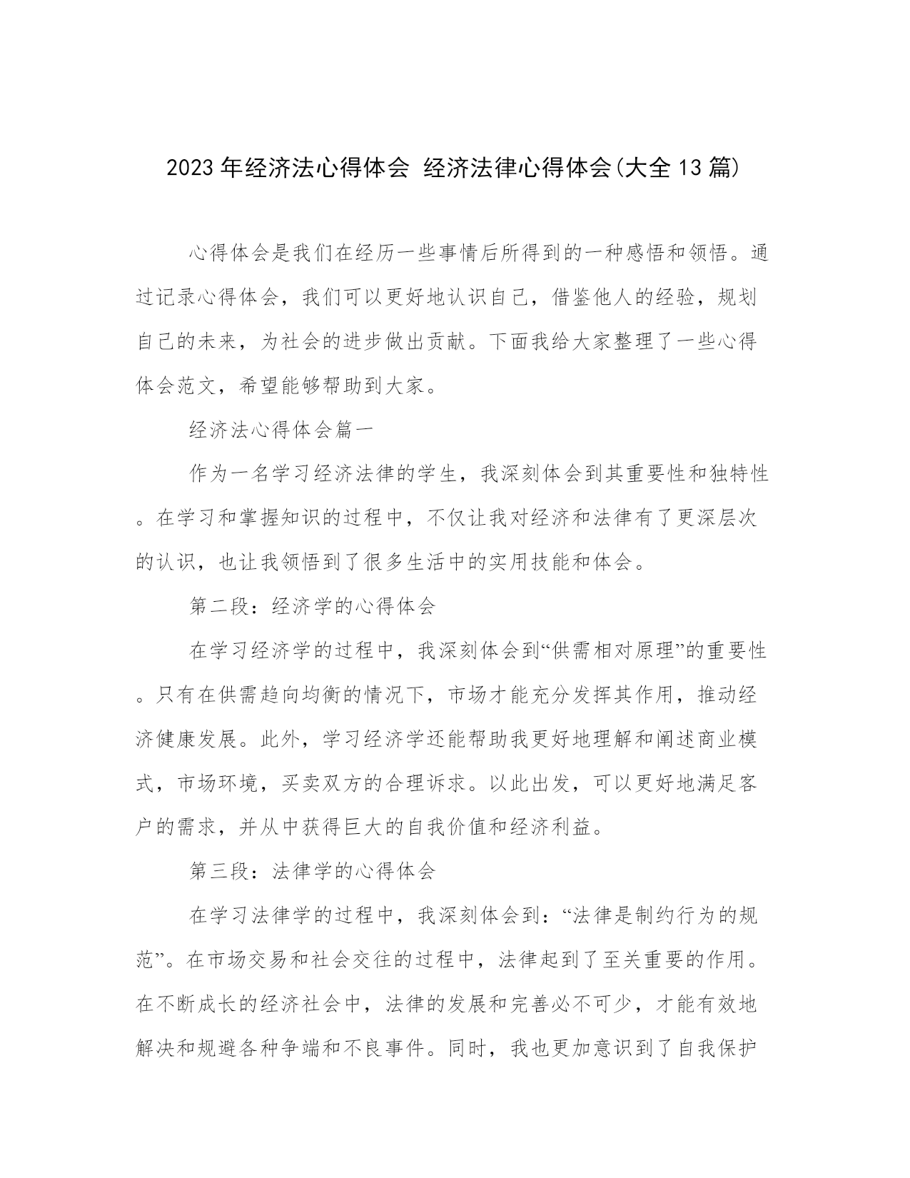 2023年经济法心得体会 经济法律心得体会(大全13篇).docx